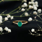 Solitaire Oval Emerald Engagement Ring with Diamonds