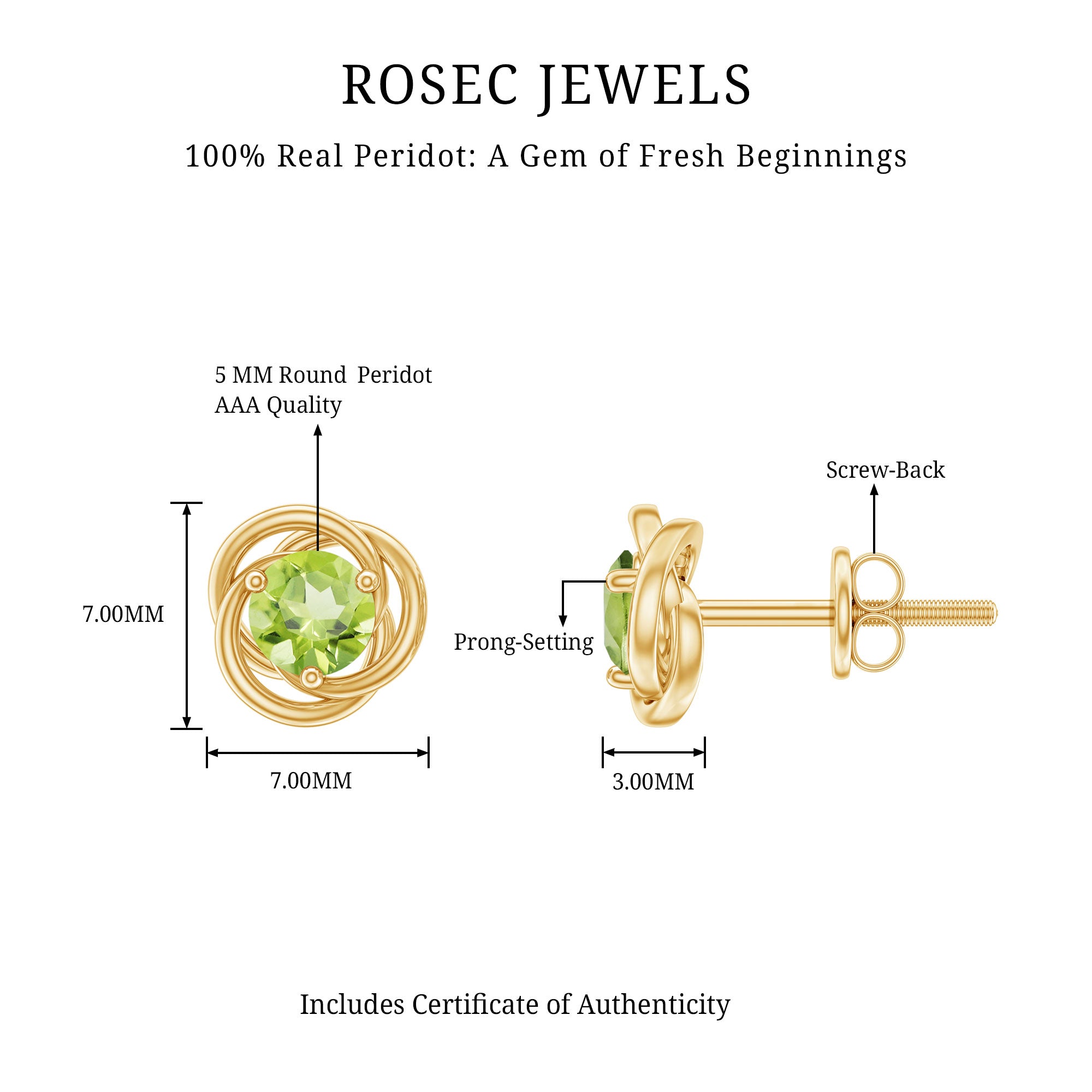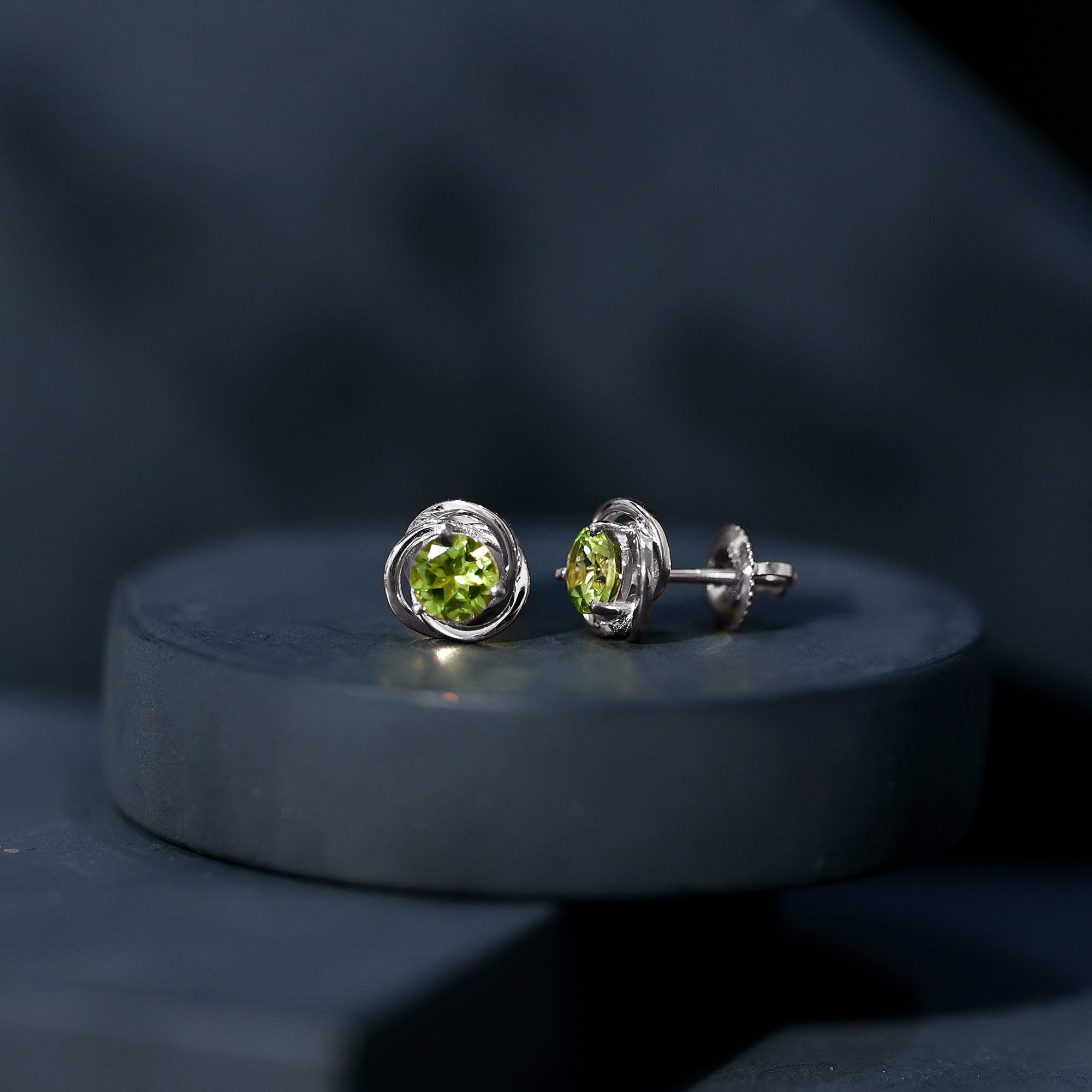 Solitaire Peridot Swirl Stud Earrings