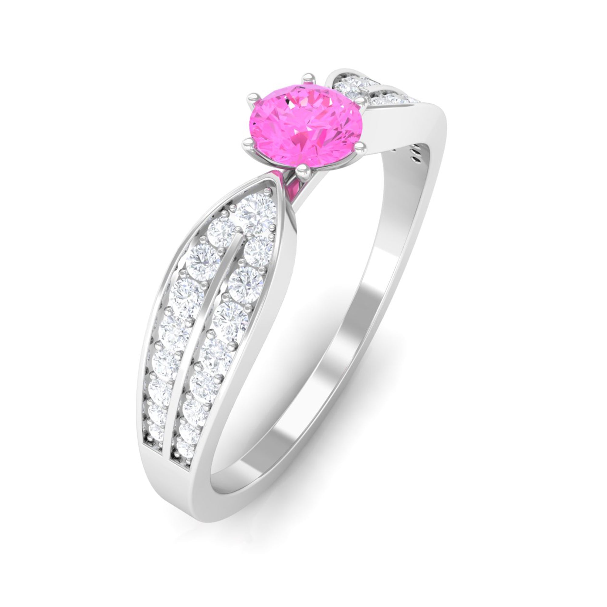 Solitaire Pink Sapphire and Diamond Engagement Ring