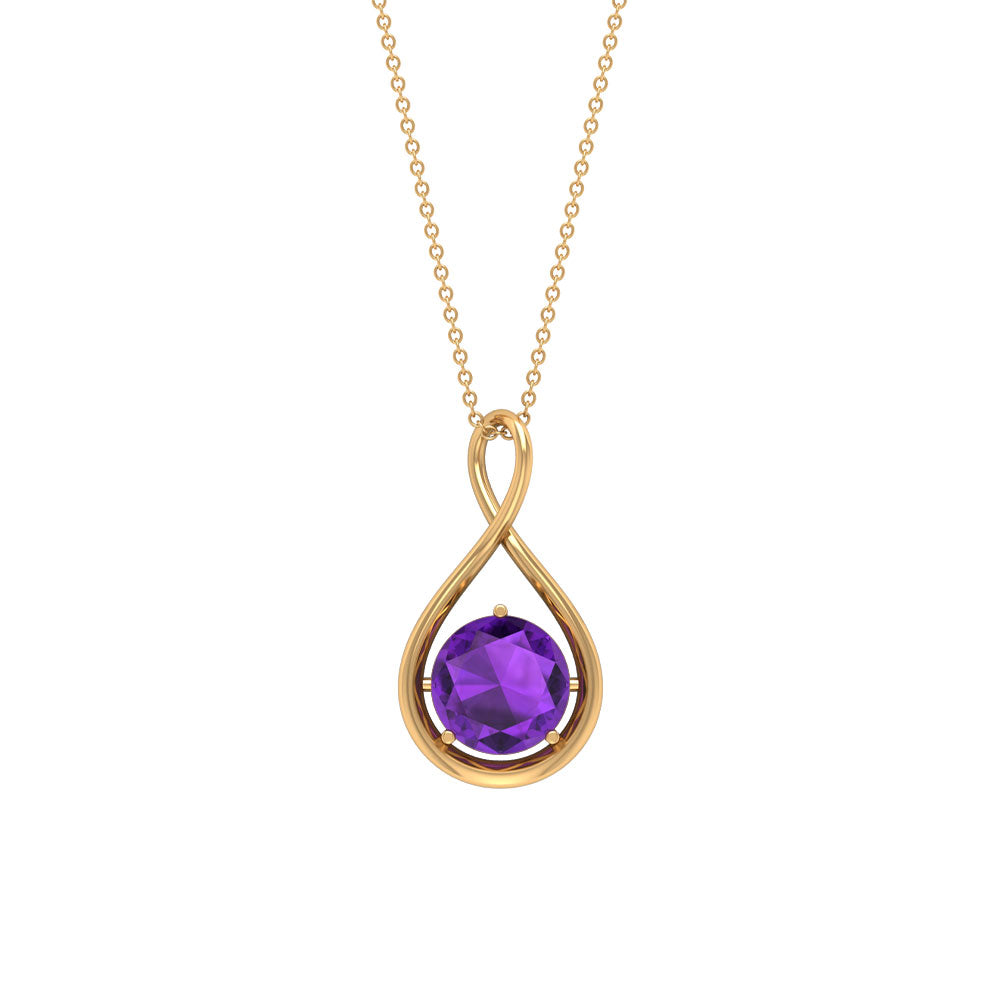 Showcase your love to your special person by presenting this Infinity Pendant that features a 7 MM Round Shape Amethyst gemstone in 3 Prong Setting.