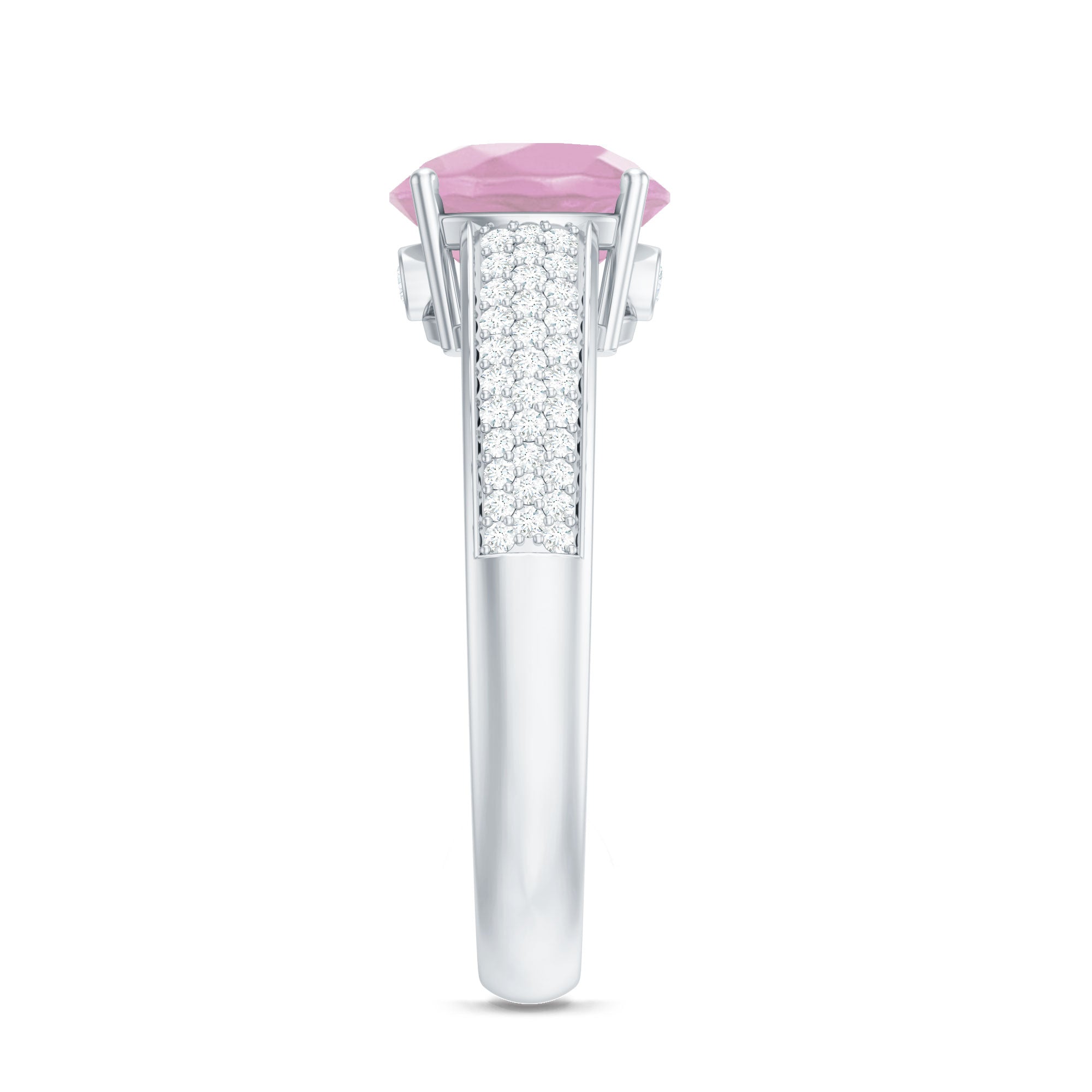 Solitaire Rose Quartz Engagement Ring with Diamond Side Stones