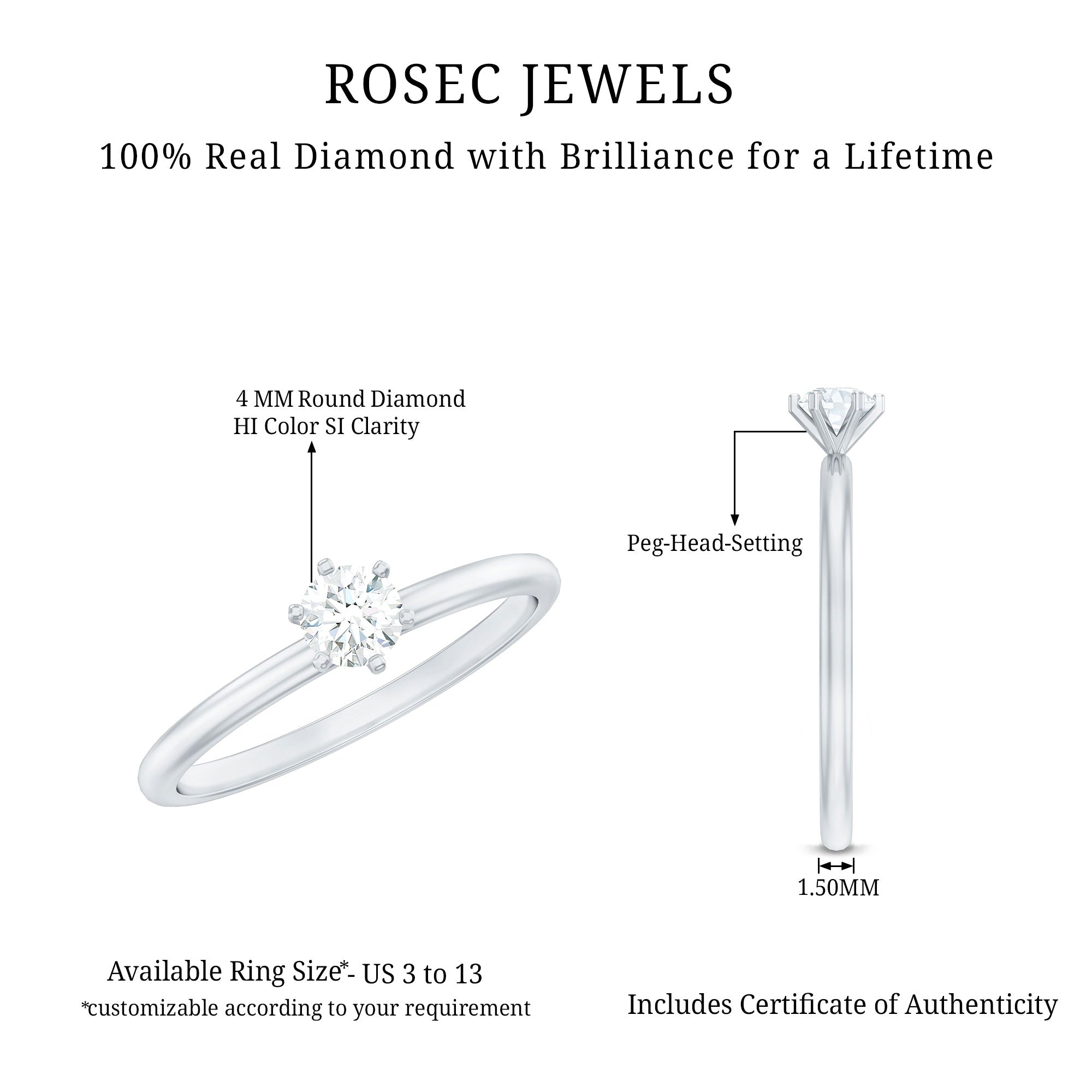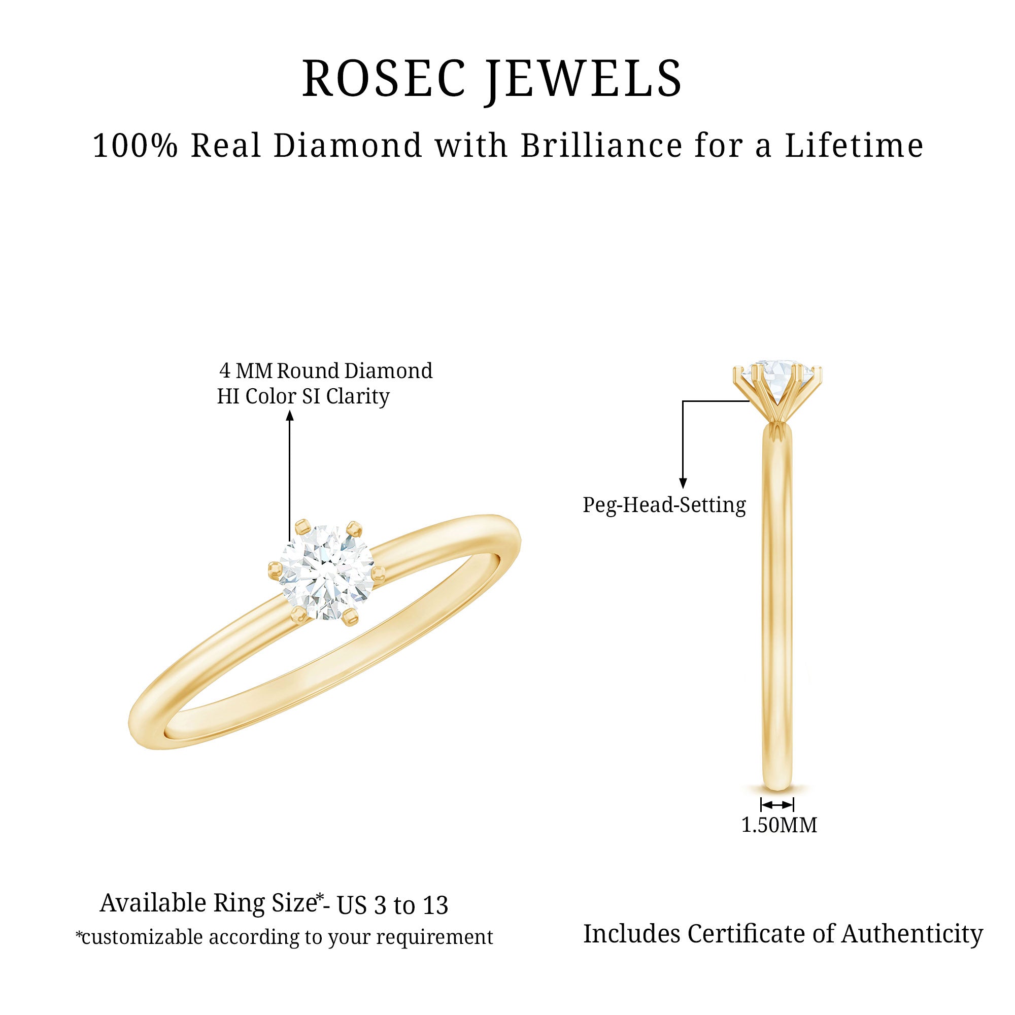 Symbolizing love and commitment, this Diamond Promise Ring incorporates special moments that show a gesture committed to a future together. As a timeless present, this Pinky Promise Ring is a treasure that would remind her of your love. As a dazzling charm, the 4 MM Round Shape Diamond in a secured Prong Setting, taking her breath away. As a modern and feminine charm, it is perfect to show your eternal love for one another. Beyond its exquisite beauty, this Proposal Ring embodies the deep promise you share. Signifying a bond with no beginning and end, this Pre Engagement Ring is a promise in every sparkle. It is a testament to the promises whispered and the dreams shared between two hearts. Beyond its exquisite craftsmanship, this Pre Promise Ring carries profound meaning, embodying eternity and everlasting love. This Classic Solitaire Ring is a token of love and a memorable way to make your commitment. It is a tangible embodiment of commitment within a romantic relationship, celebrating the profound bond.