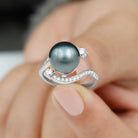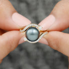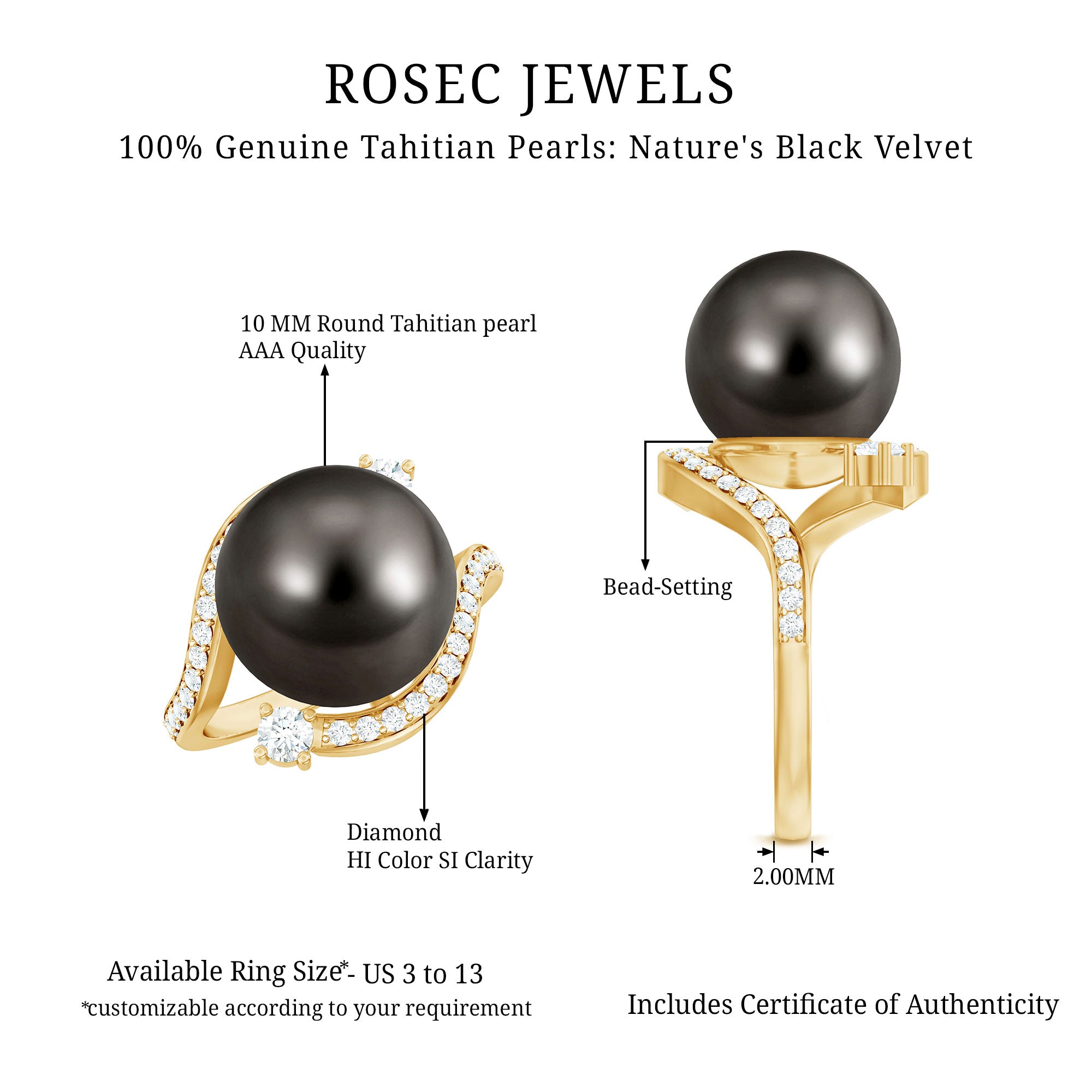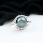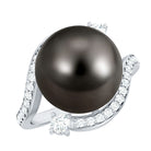 Solitaire Black Tahitian Pearl Bypass Engagement Ring with Diamond