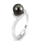 Solitaire Tahitian Pearl Bypass Engagement Ring with Diamond