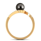 Effortlessly draws attention to its incredible radiance, this Round Shape Tahitian Pearl Engagement Ring is crafted in gold for opulent appeal. The Black Tahitian Pearl is the captivating center stone along with that, Diamond are held in surface prong setting arranged over bypass shank. This Solitaire Engagement Ring exhibits high brilliance.