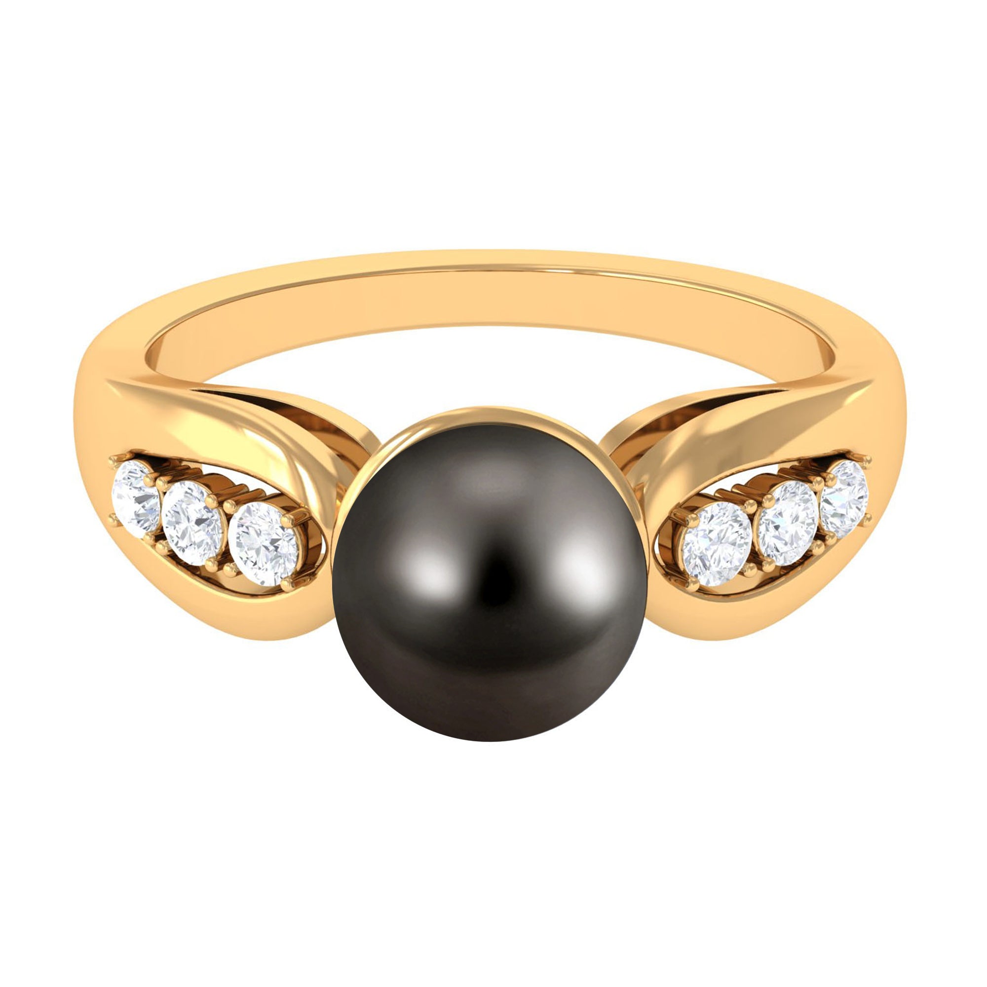 A classic piece with timeless appeal this Pearl Solitaire Engagement Ring is adorned with the brilliant Round Shape Tahitian Pearl with Round Diamond set as Side Stones on the shank. This Tahitian Pearl Ring is crafted in Gold. This charming Tahitian Pearl and Diamond Ring makes for a trendy and elegant choice for your big day.
