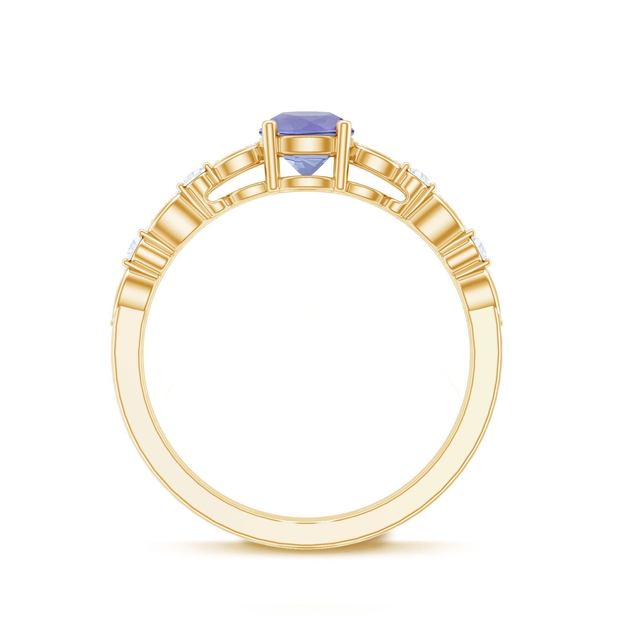 Make her feel special with this breathtaking Tanzanite Engagement Ring. The Solitaire ring features a dazzling round Tanzanite solitaire on a double band shank delicately decorated with sparkling Diamond. This stunning double band ring is the perfect symbol of your love and commitment, sure to take your partners breath away. Celebrate your future together with this beautiful and meaningful piece of jewelry.