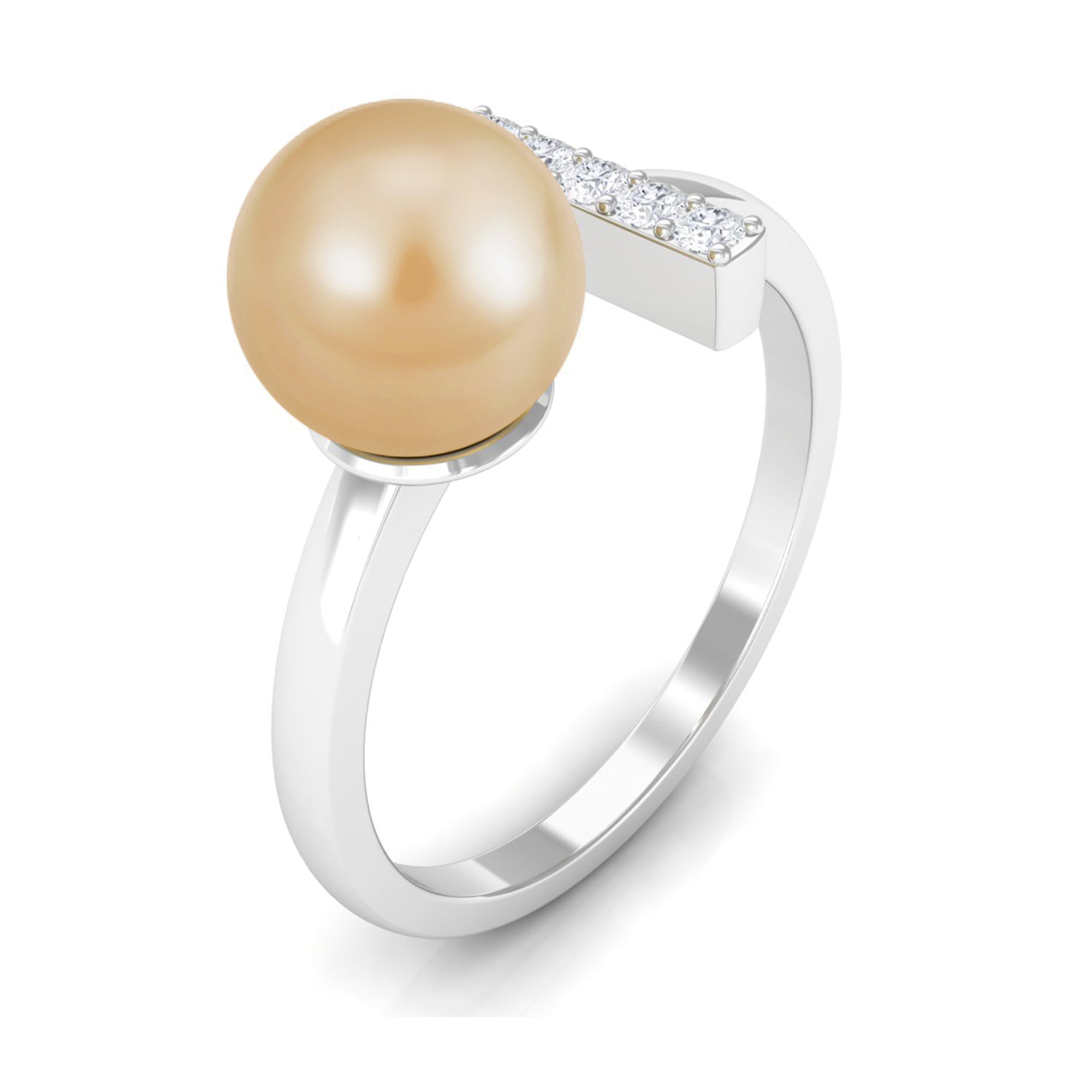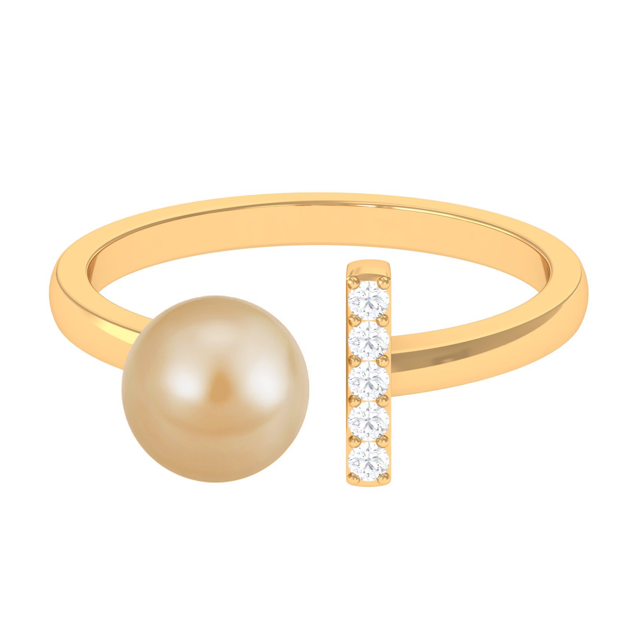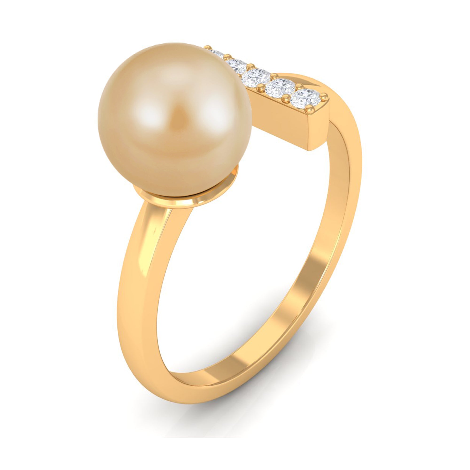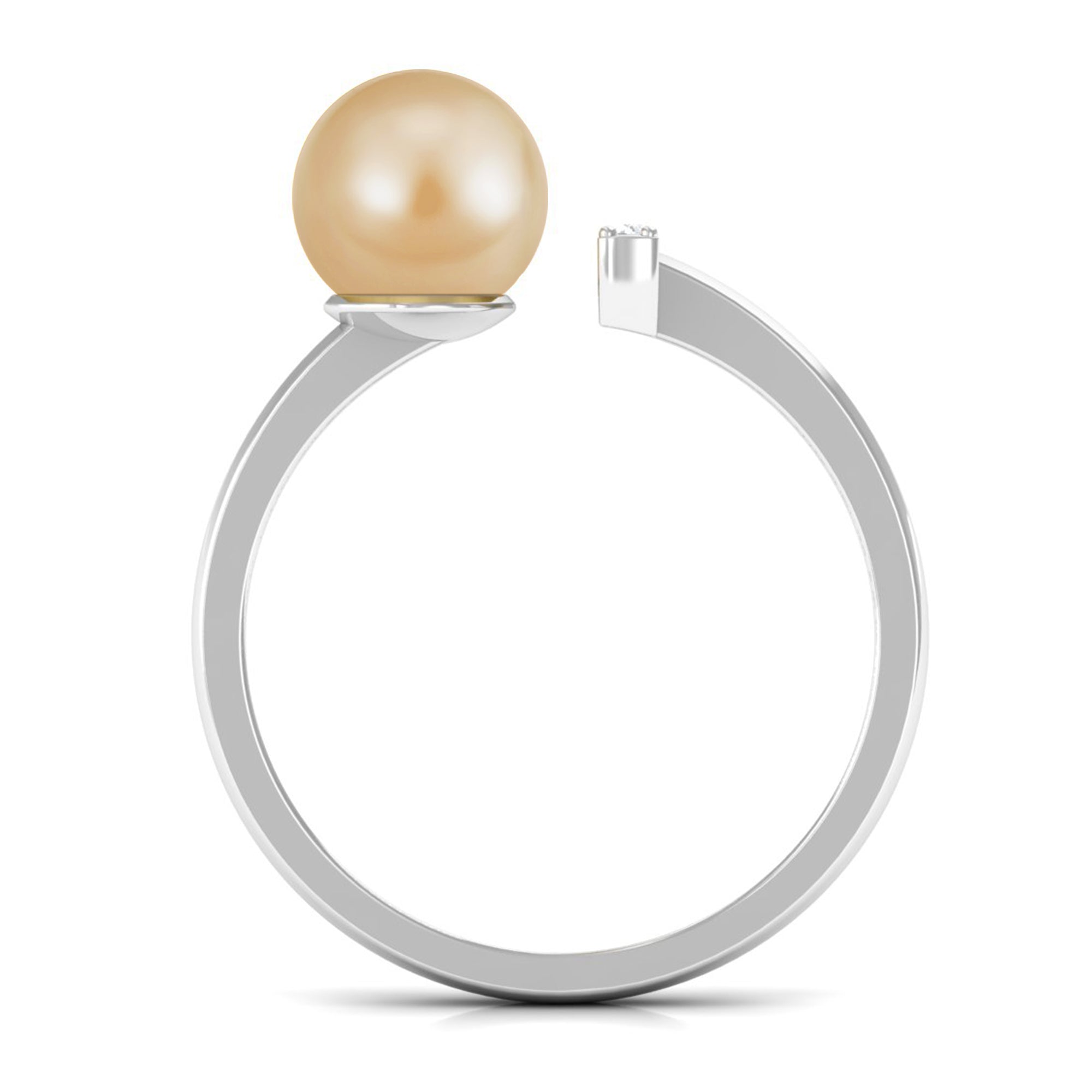 Modern Cuff Engagement Ring is featuring a South Sea Pearl in bead setting and Round Petite Diamond to enhance the look of this South Sea pearl ring. This Cuff Ring is very sober and minimal, it adds a touch of glamour to your look too. Get this beautiful Golden Pearl Ring and flaunt its beauty.