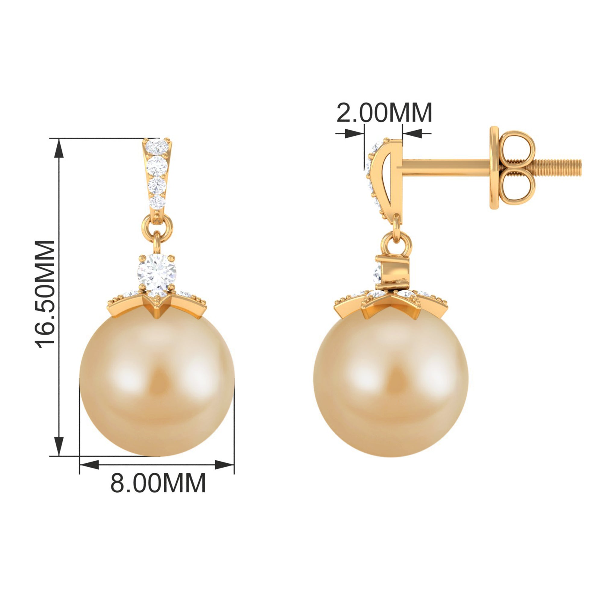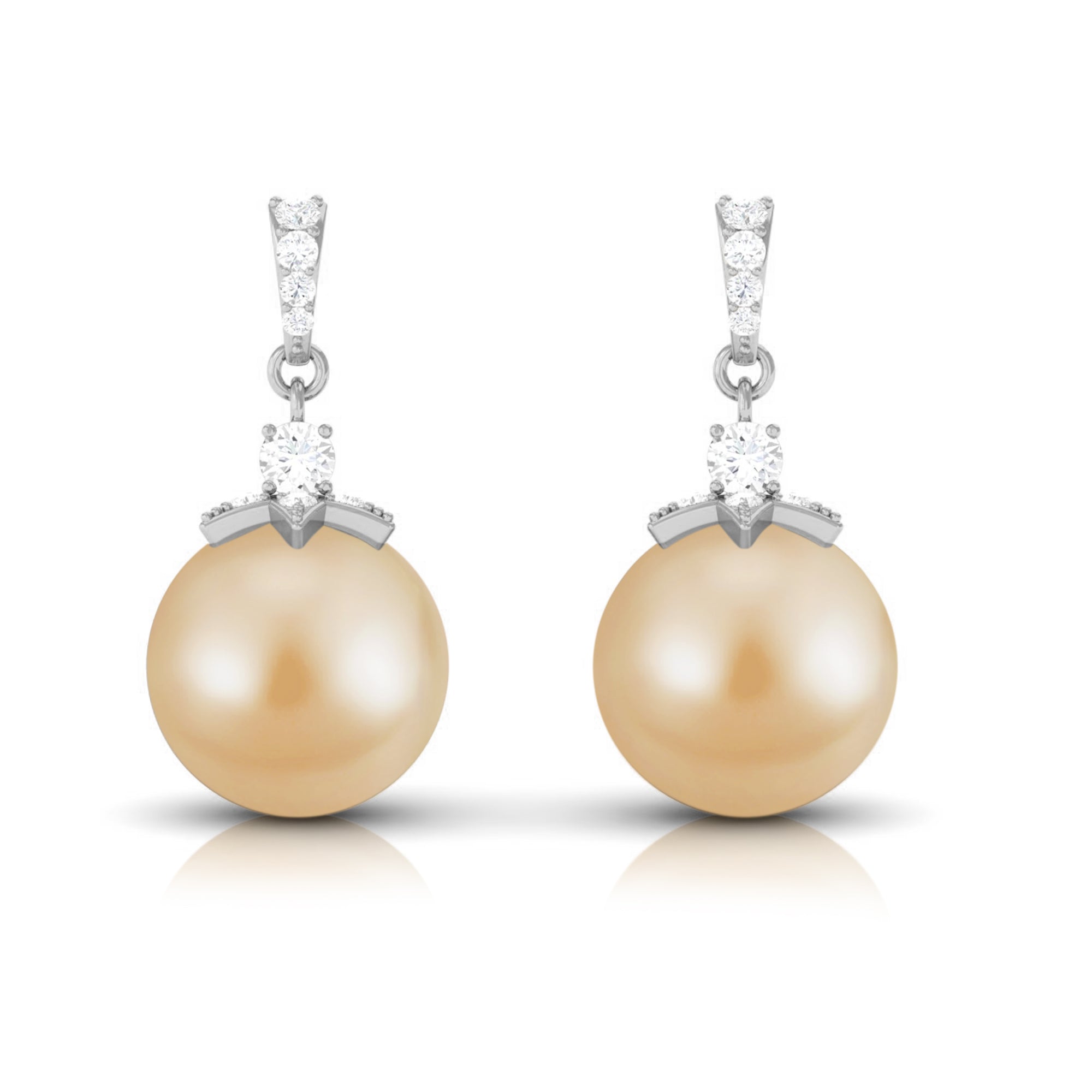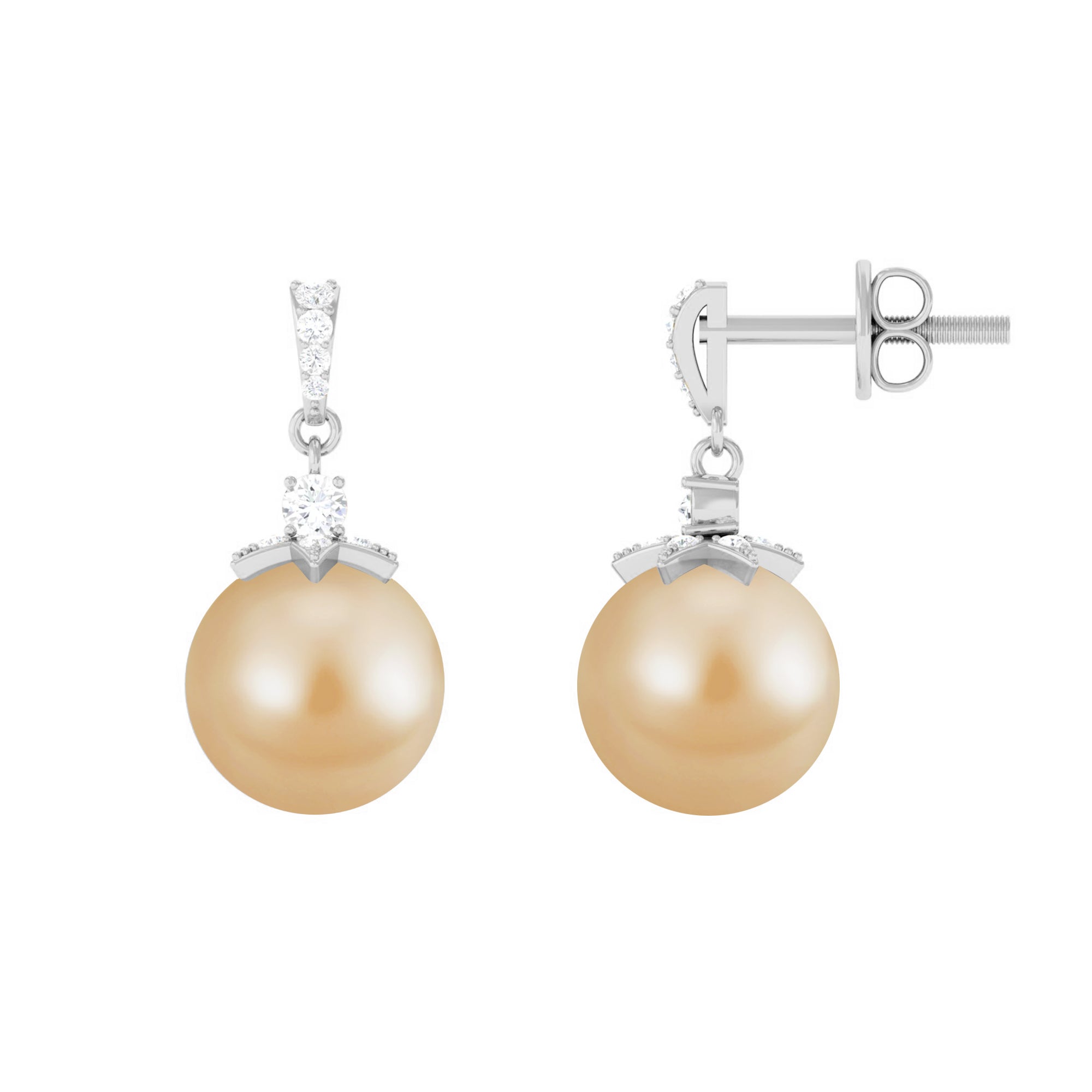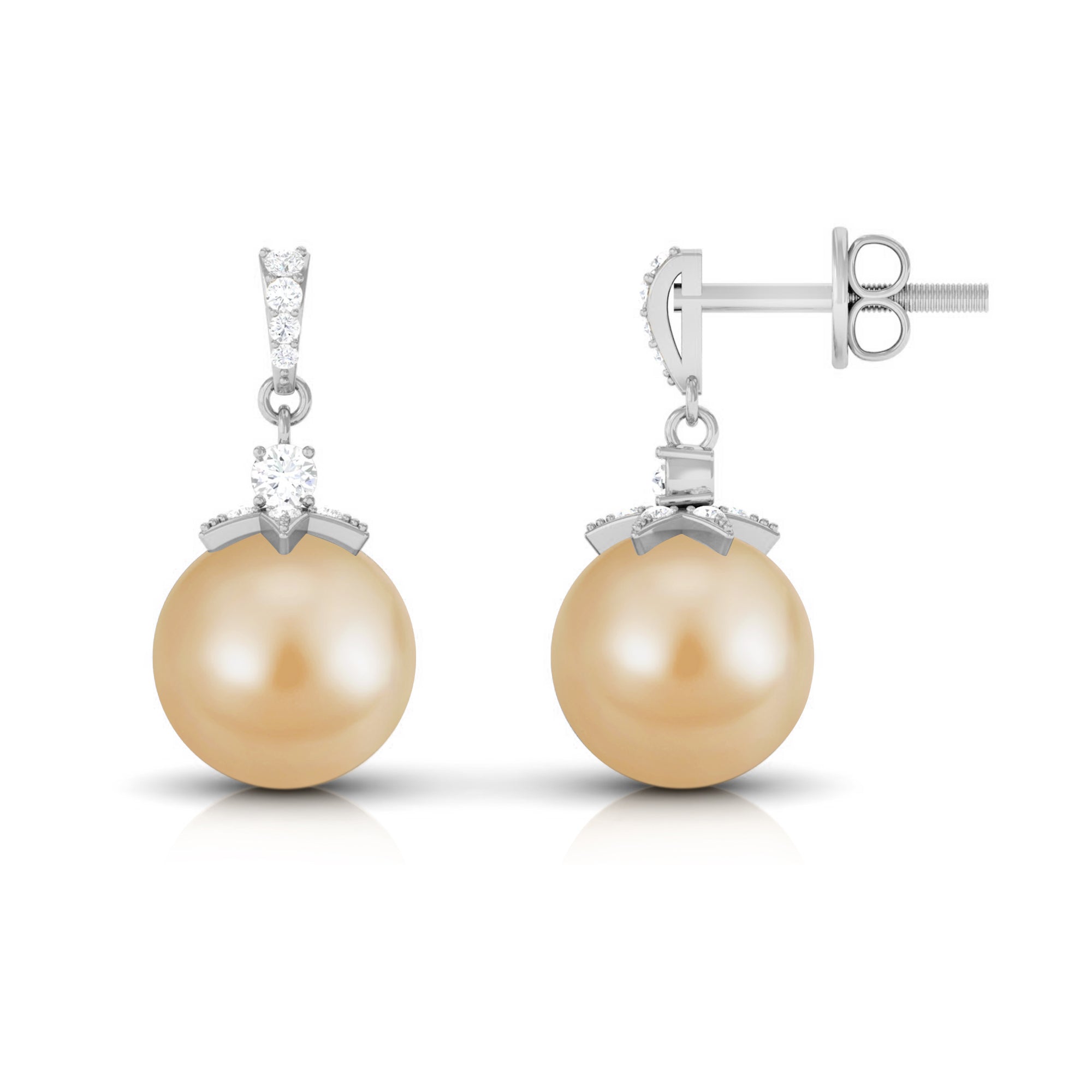 South Sea Pearl Minimal Drop Earrings with Diamond Stones