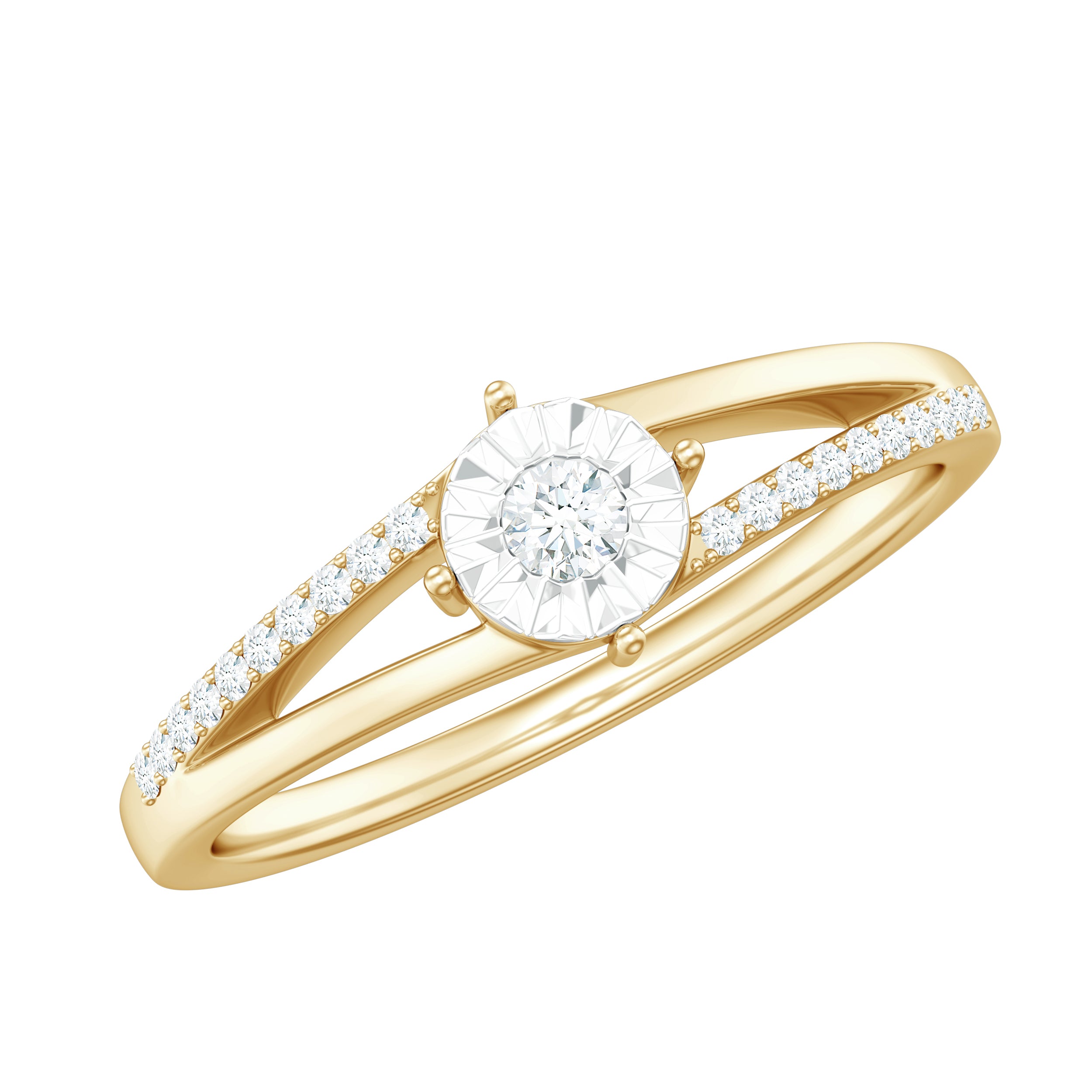 Spilt Shank Round Diamond Engagement Ring in Illusion Setting