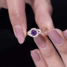 Leave a memorable mark with this exquisite designer engagement ring. This ring boasts a captivating flower design, adorned with a brilliant round-cut Amethyst delicately set in a claw setting. The Amethyst is beautifully complemented by sparkling Diamond stones, while the split shank adds an elegant touch.