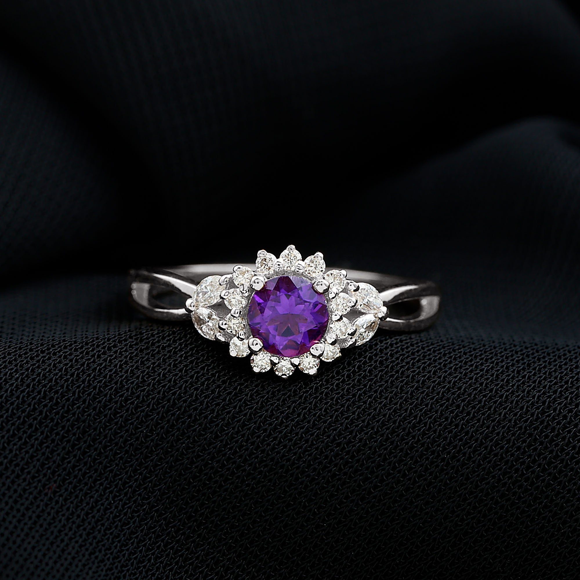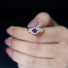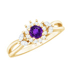 Split Shank Amethyst Flower Engagement Ring with Diamond