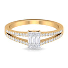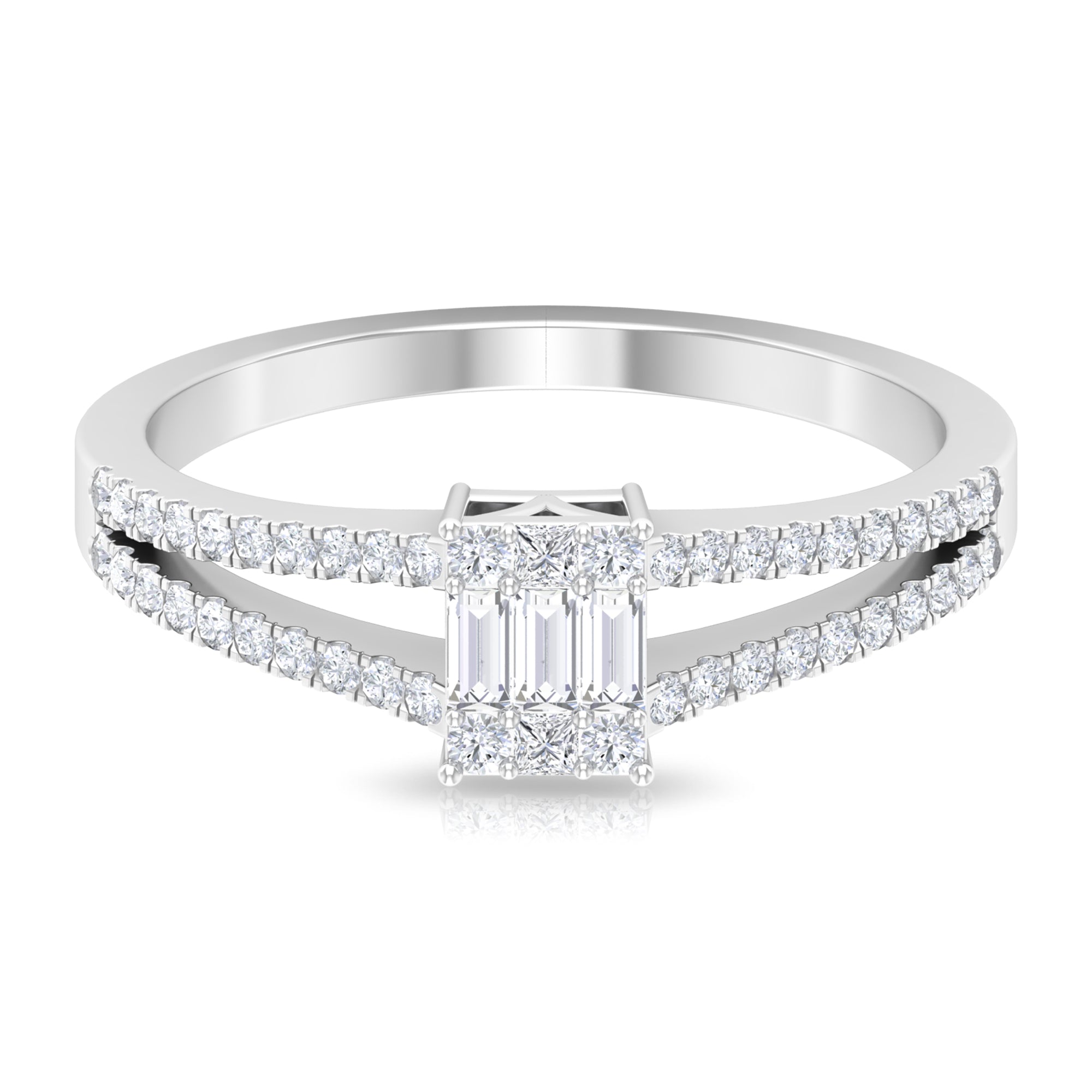 Experience love and happiness with our Engagement Ring featuring Baguette Cut, Princess Cut and Round Cut Diamonds embellished in Prong Setting, for you to feel unique. This Illusion Set Diamond Engagement Ring with Split Shank is the one that she will cherish forever.