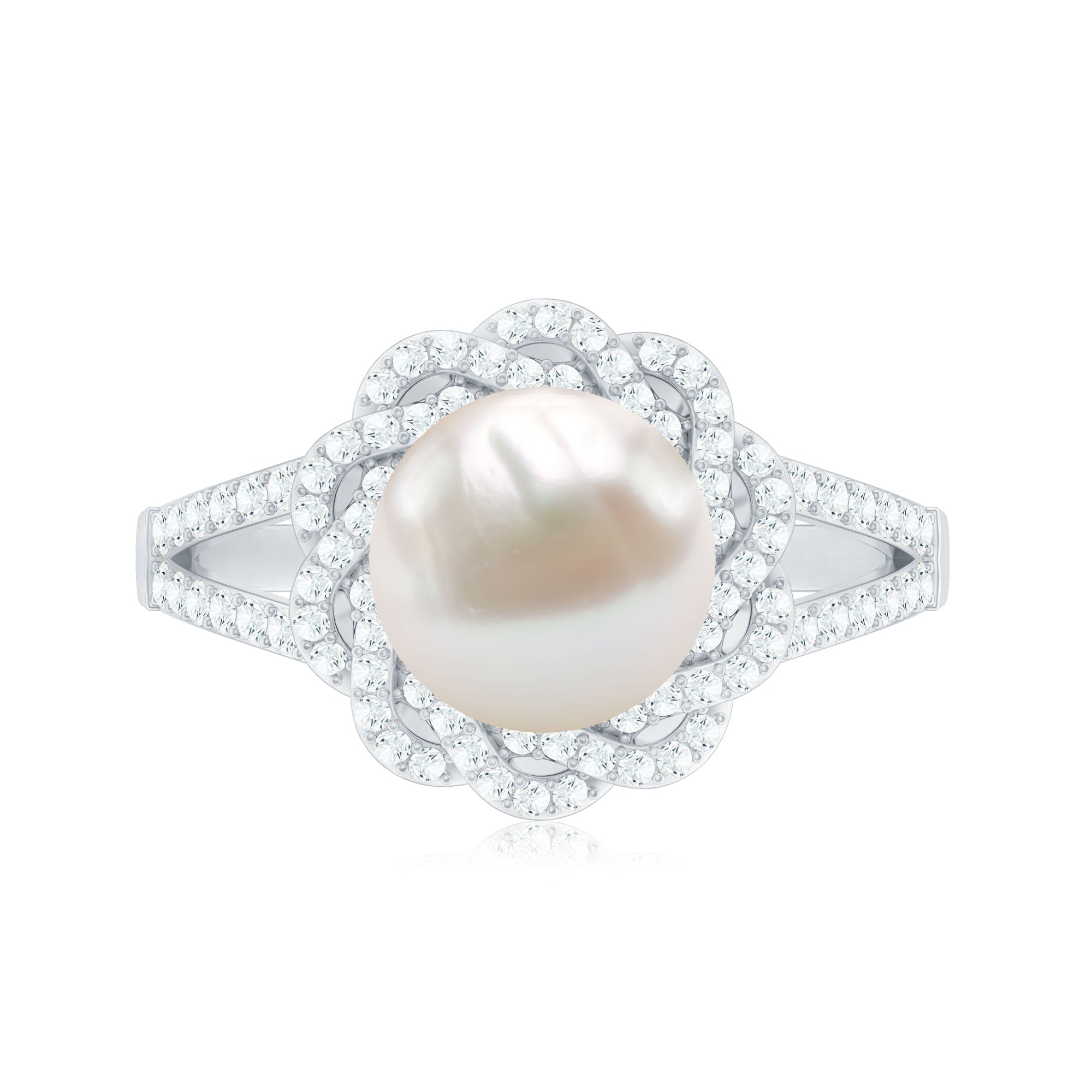 Enchanting braided ring is featuring Freshwater Pearl and Diamond, makes for an amazing Statement Ring. Freshwater Pearl exhibits AAA Quality and possess subtle color. Semi Precious June Birthstone summons faith and innocence. It is Natural and Certified, helps in enhancing personal integrity and grow sincerity of the wearer. The extremely durable nature and luster makes it a captivating and desirable gem. Diamond - HI-SI Quality exhibited by Brilliant Cut Diamond give justice to its incredible value. Diamond summons beauty, attractiveness and unbreakable love. It is Certified and helps in bringing success and luxury to the wearer. Its Durability and Luster is enhanced by Lab Created Treatment, to further make it a captivating and desirable gem.