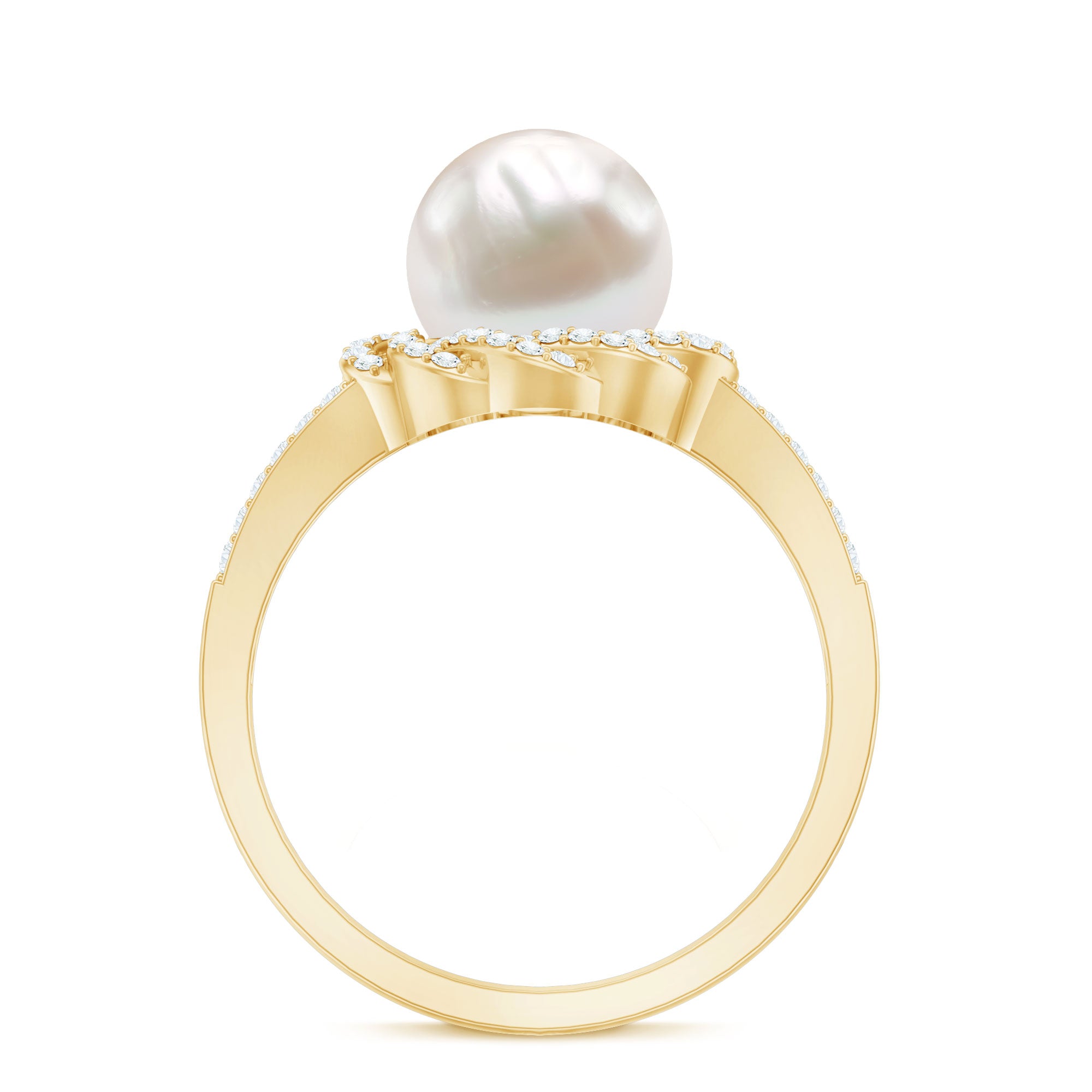 Split Shank Freshwater Pearl and Diamond Braided Statement Ring
