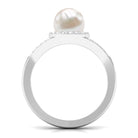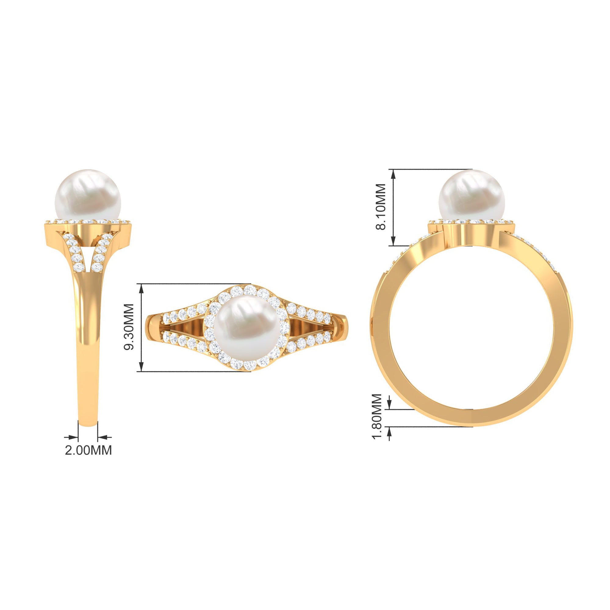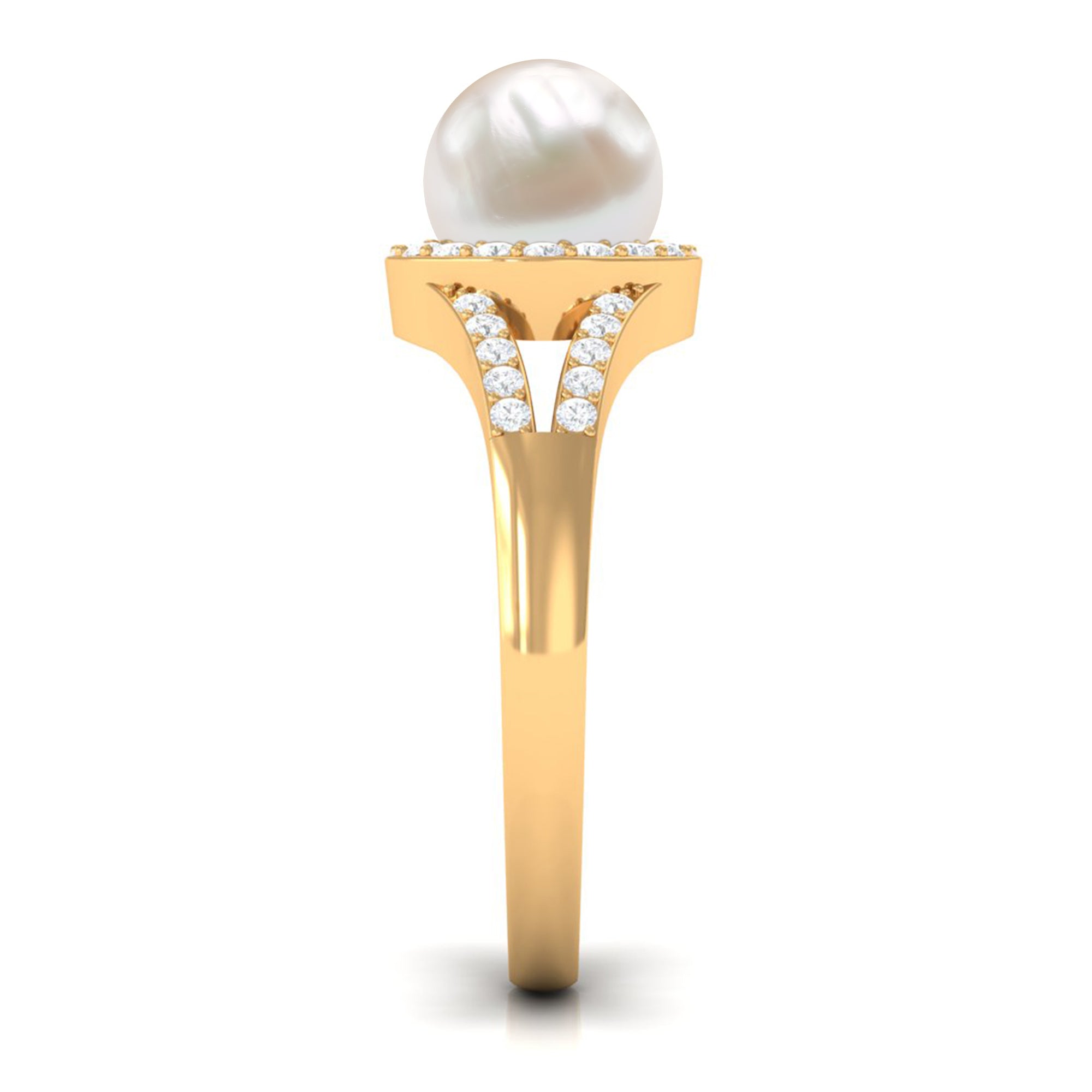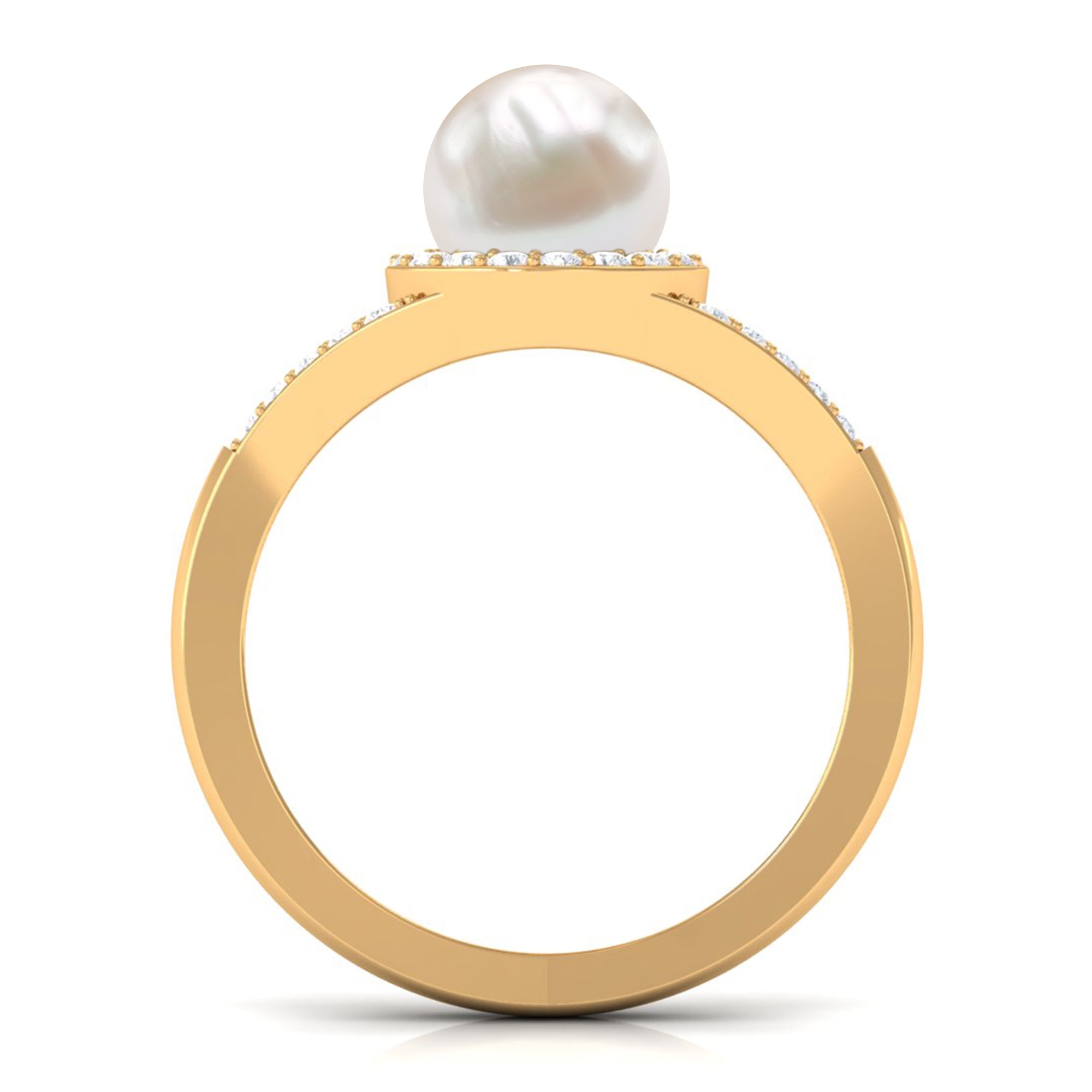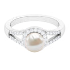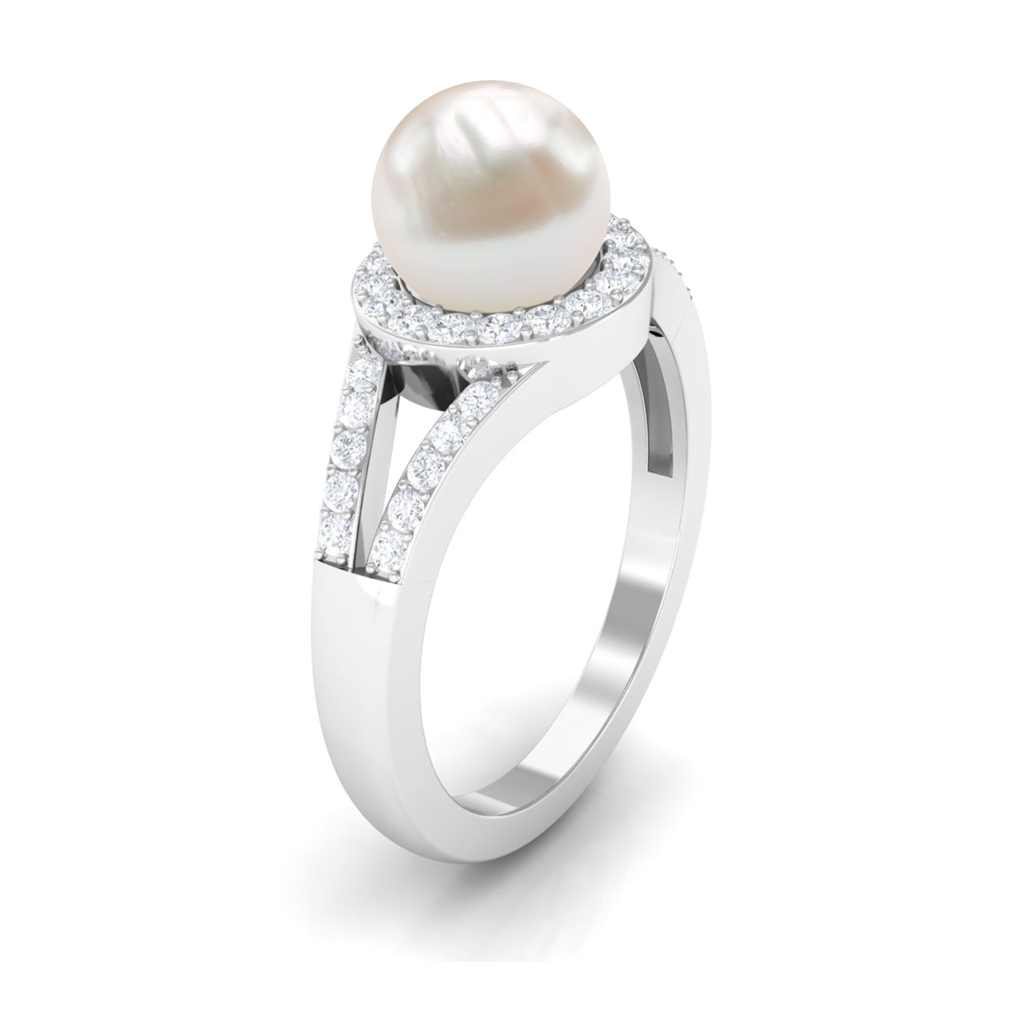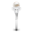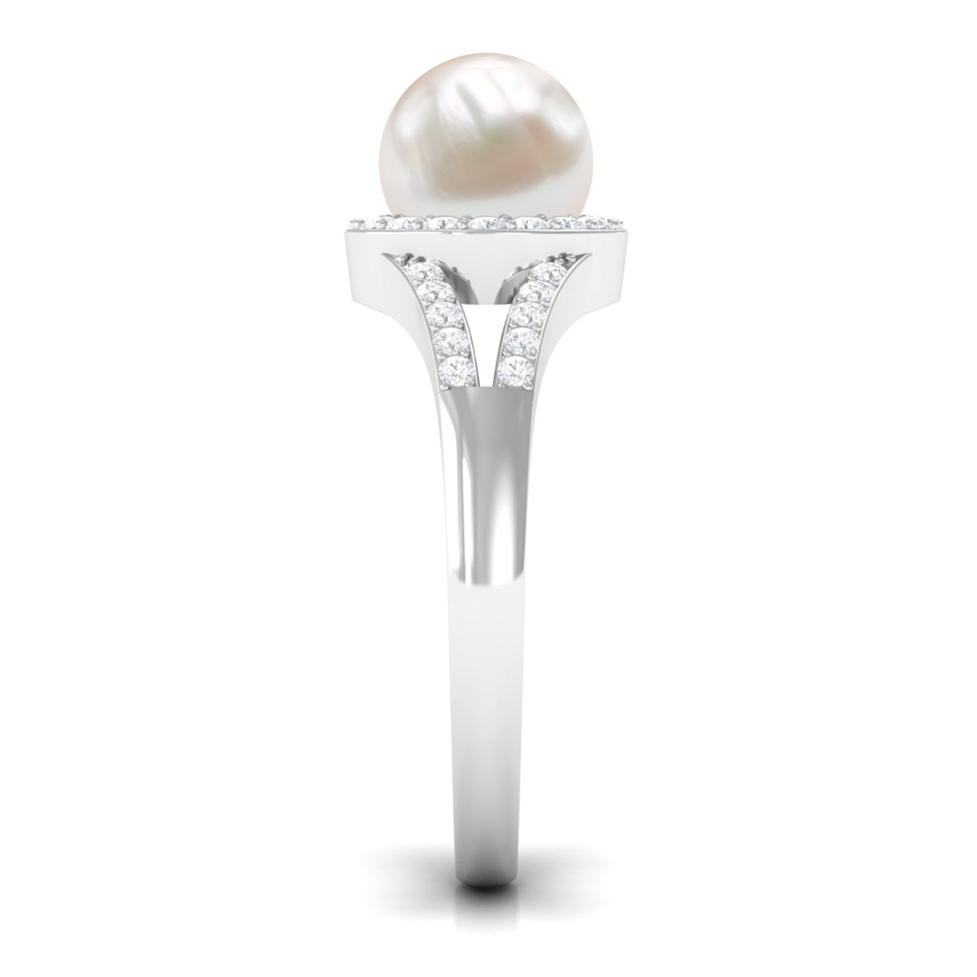 Split Shank Freshwater Pearl Engagement Ring with Diamond Halo