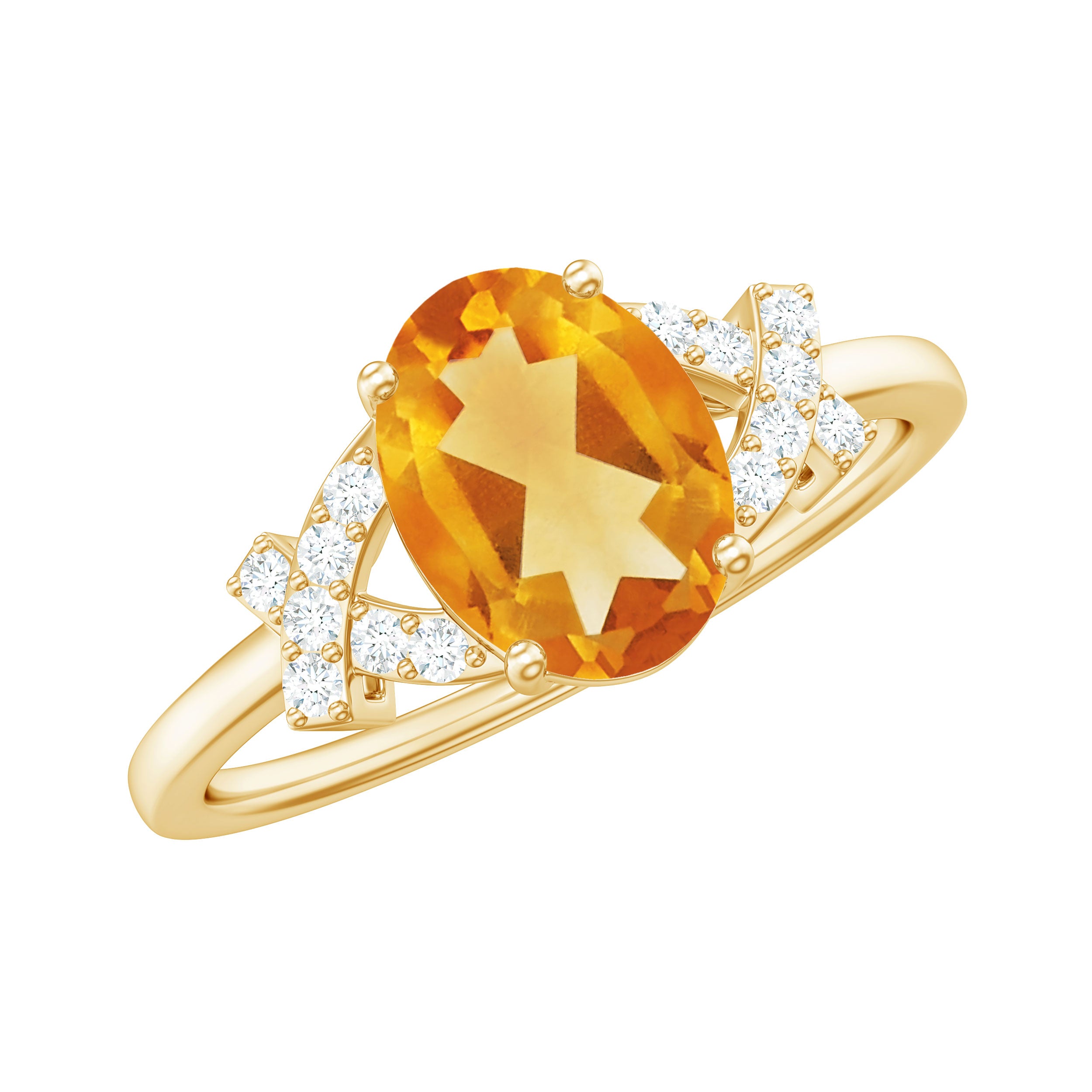Split Shank Oval Citrine and Diamond Solitaire Engagement Ring
