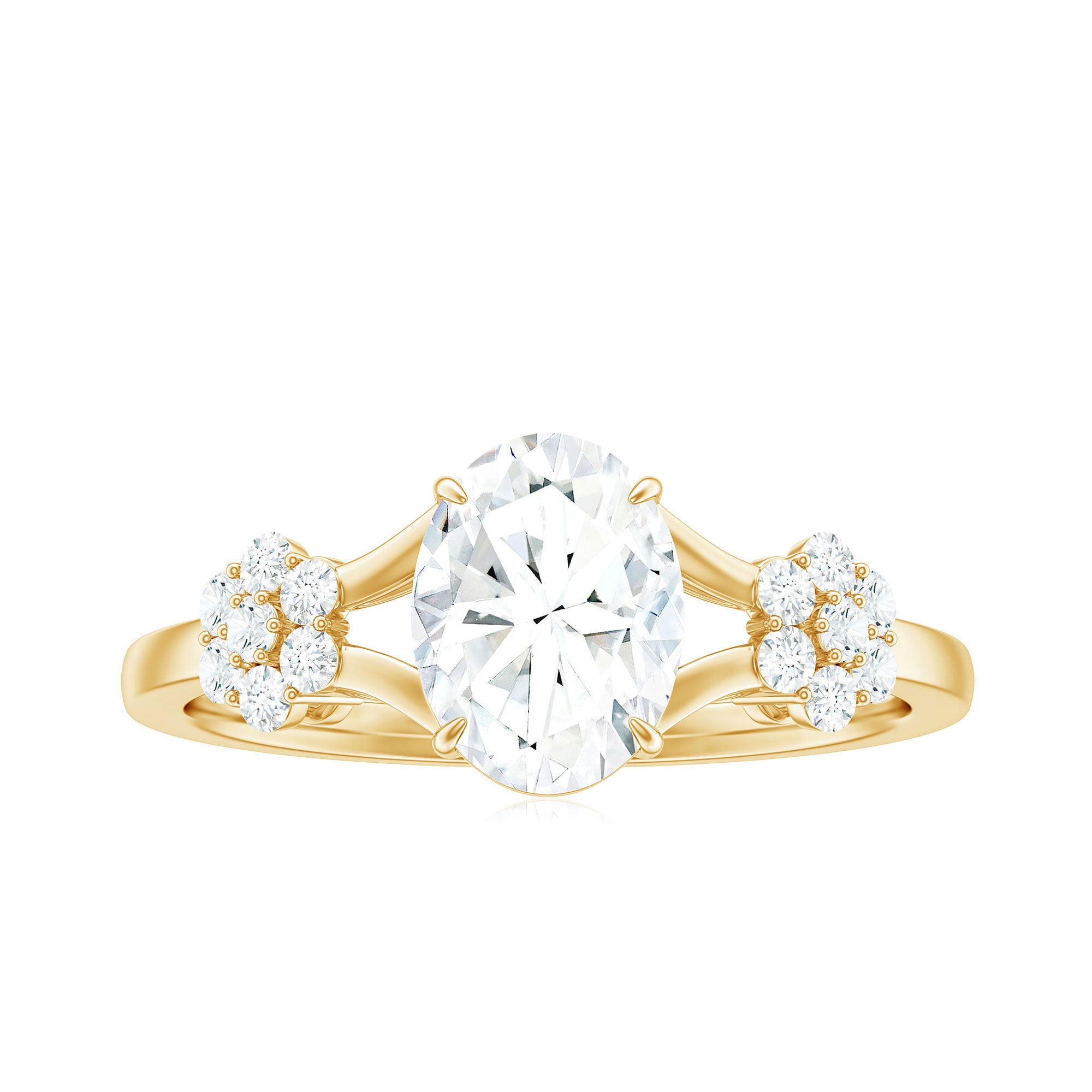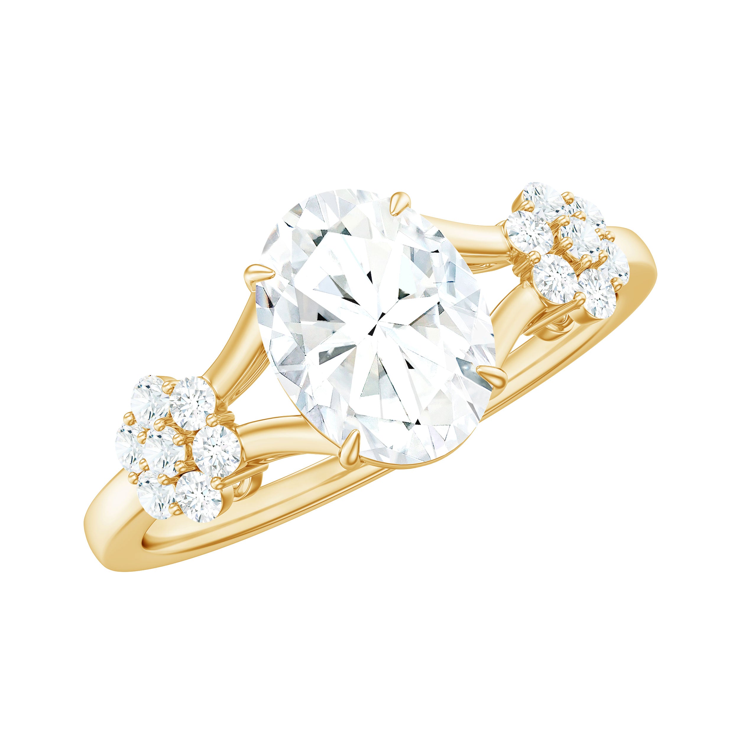 Flaunt your gorgeous look with this Cocktail Ring adorned with Oval Cut Zircon in Claw Set with Round Zircon Stones set in flower pattern on either side. The Flower Ring is crafted with gold metal and has a unique and eye-catching design that is perfect for special occasions.