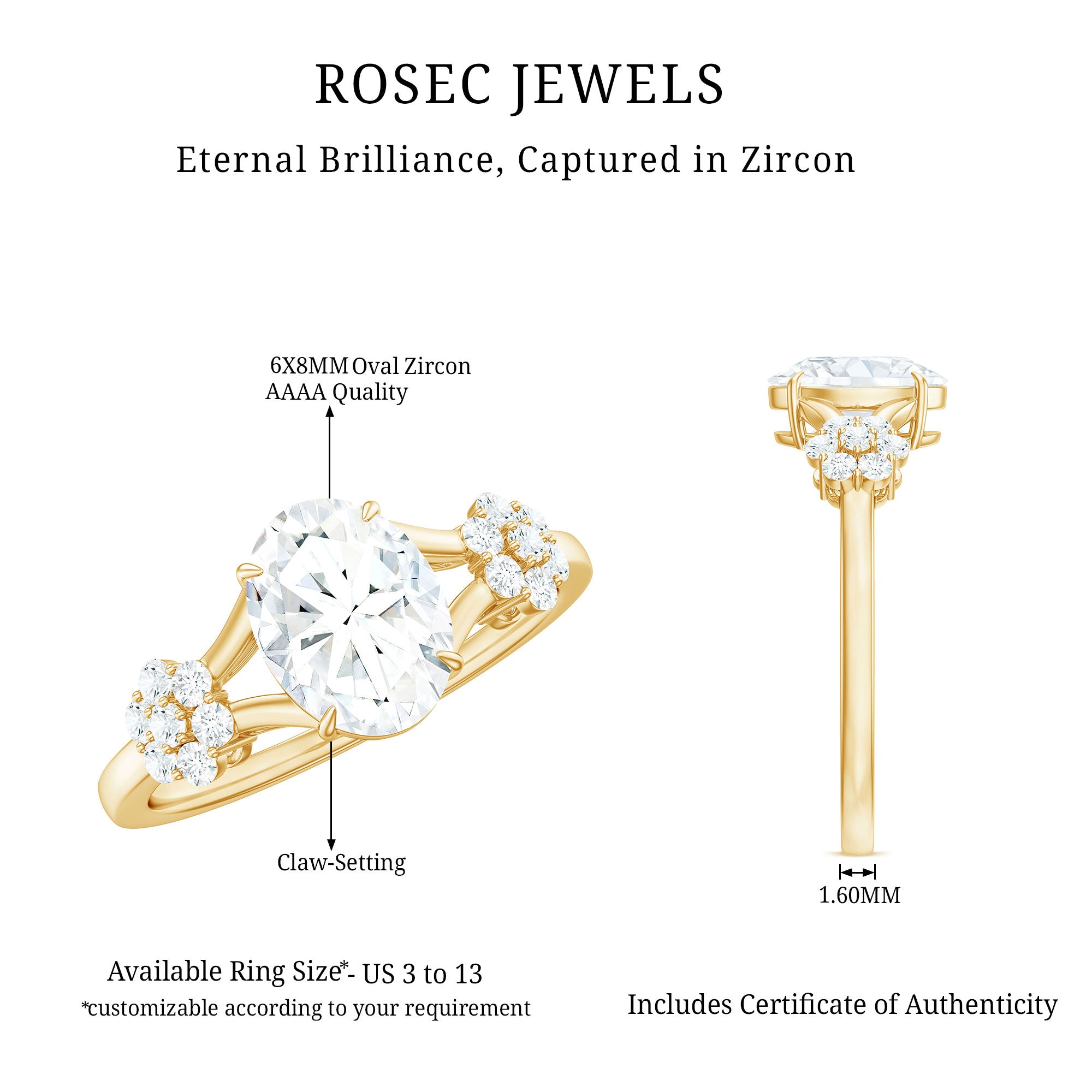 Split Shank Oval Cut Zircon Cocktail Flower Ring in Gold