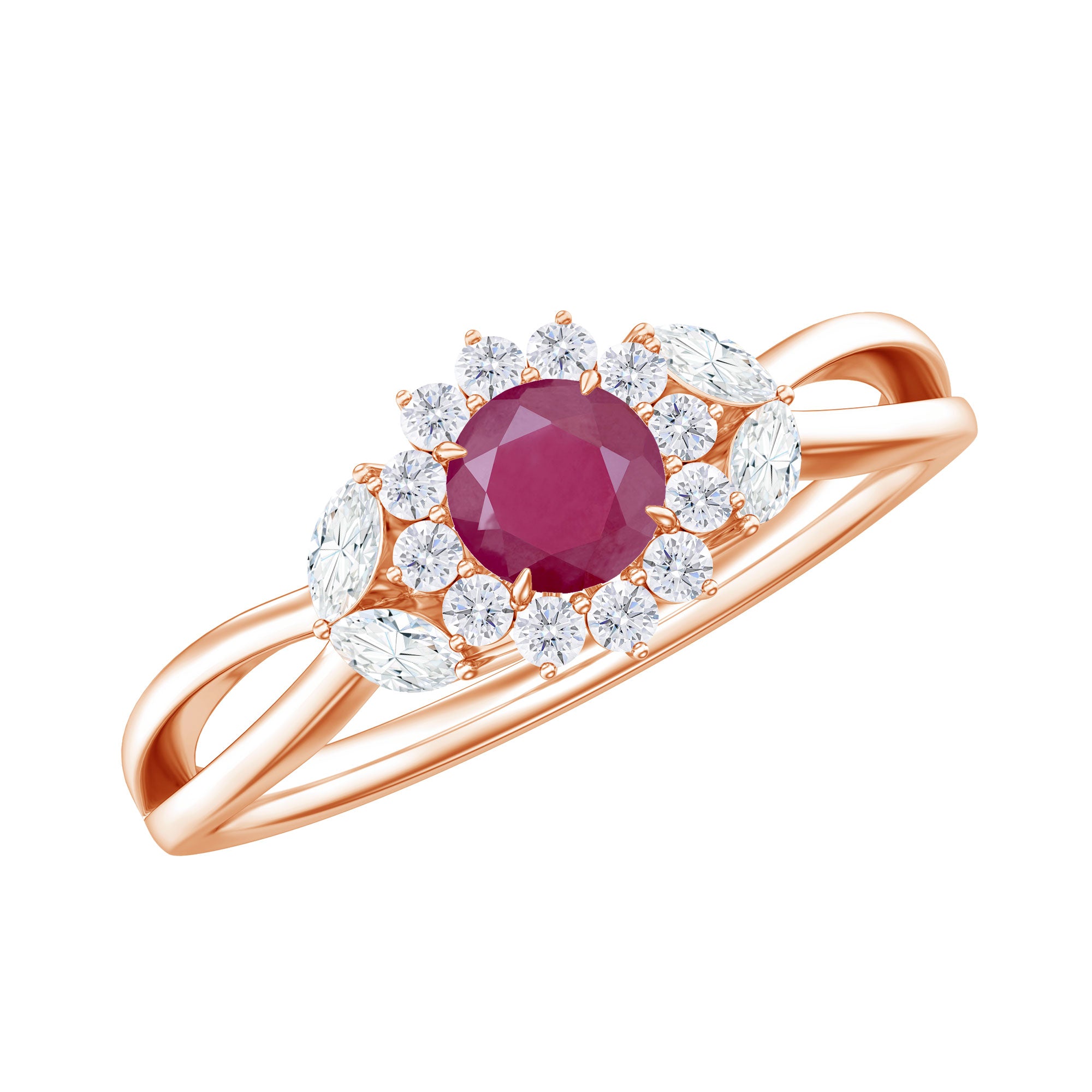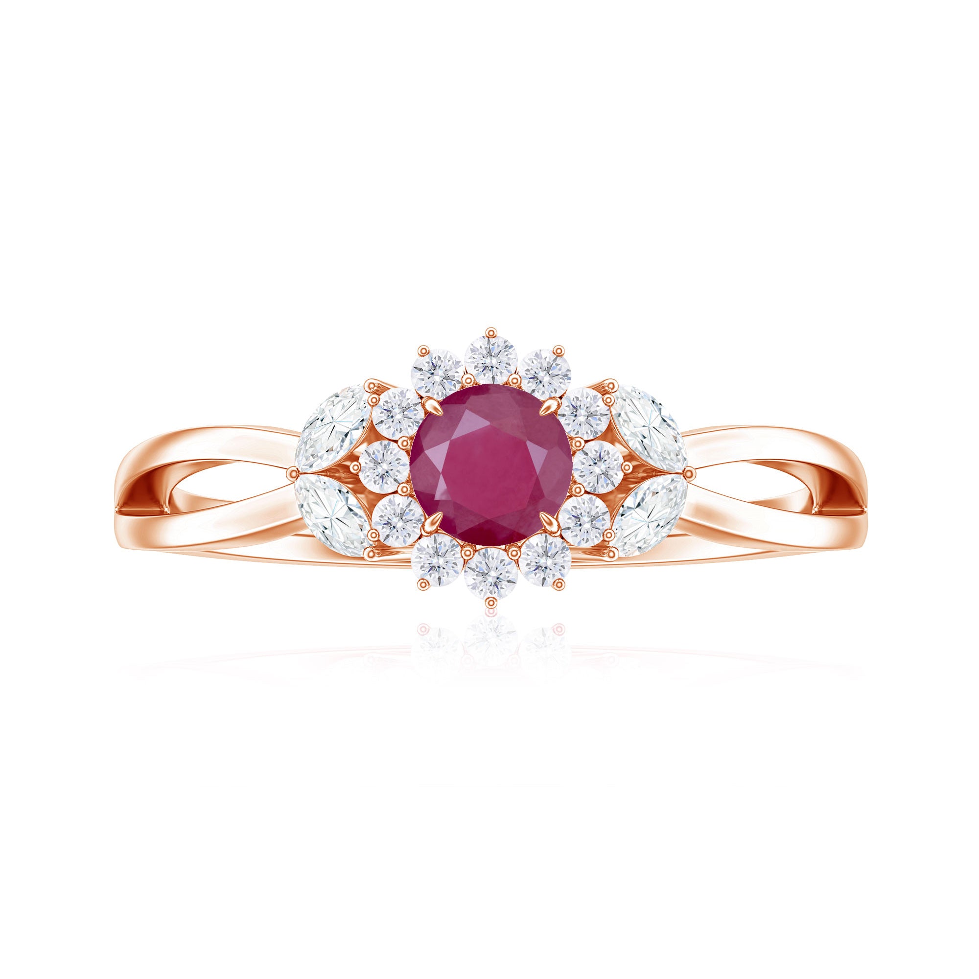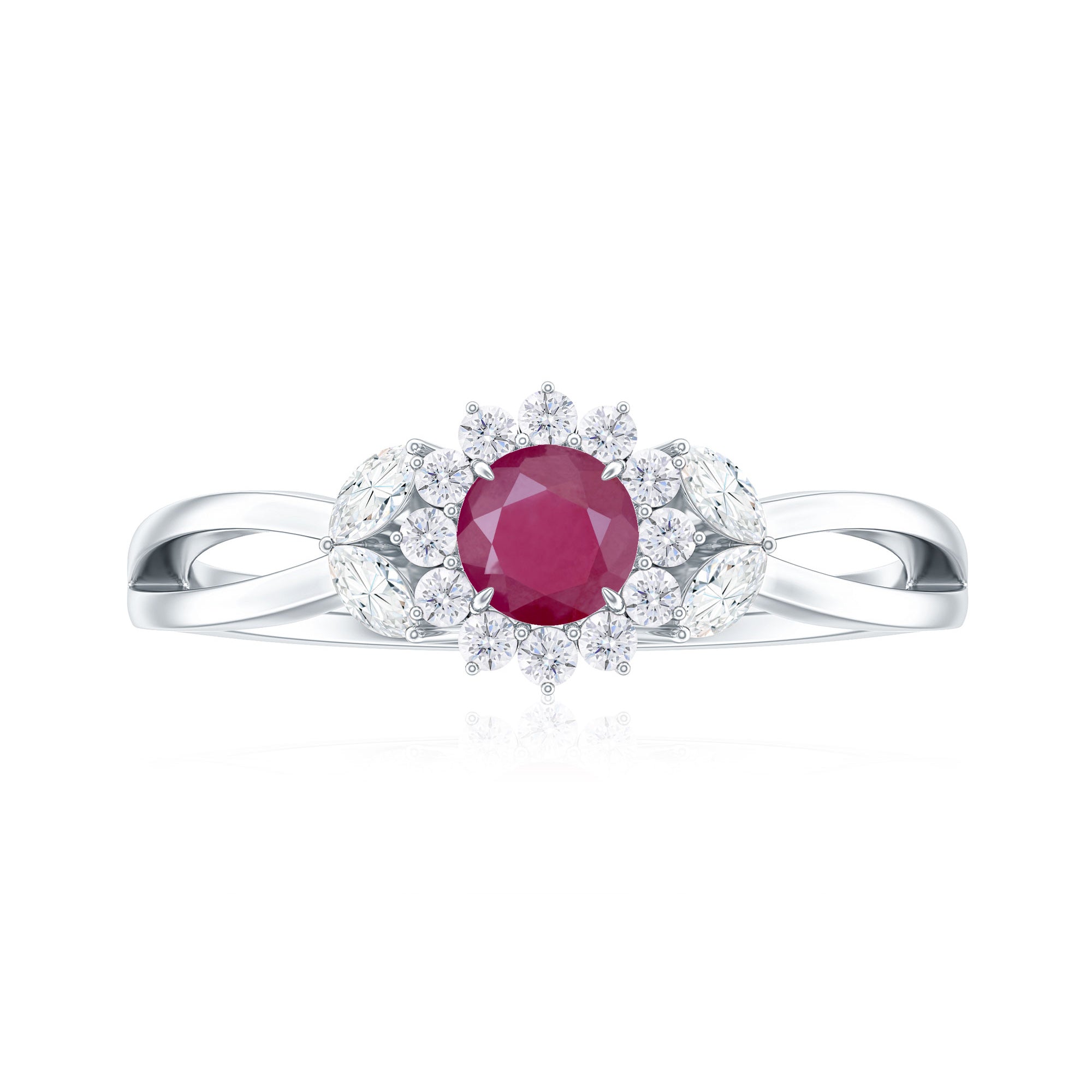 Split Shank Ruby Flower Engagement Ring with Diamond