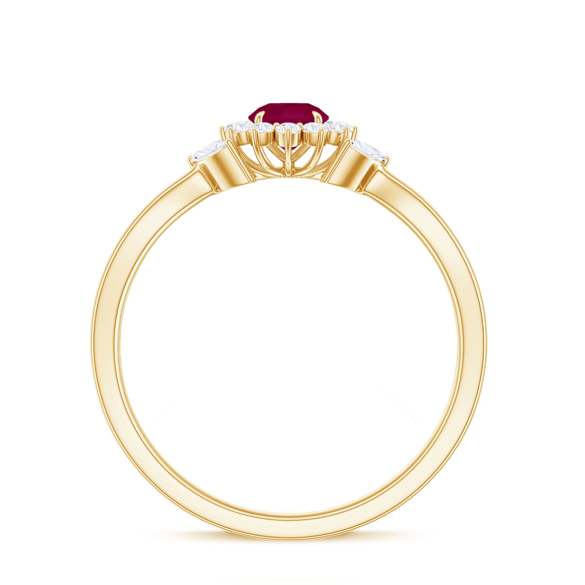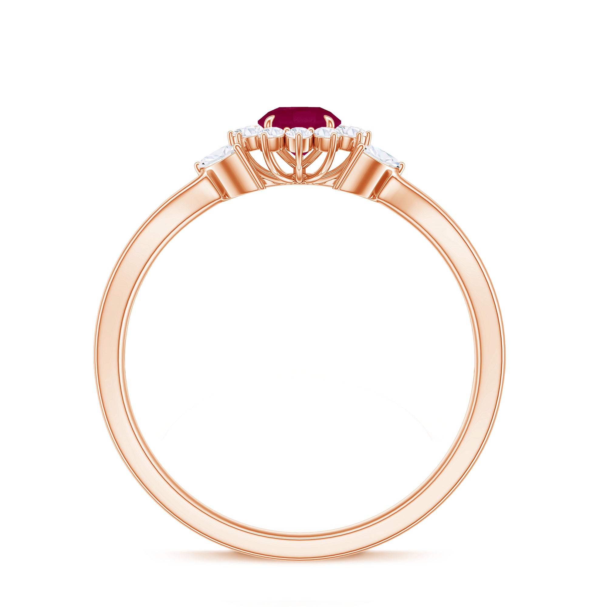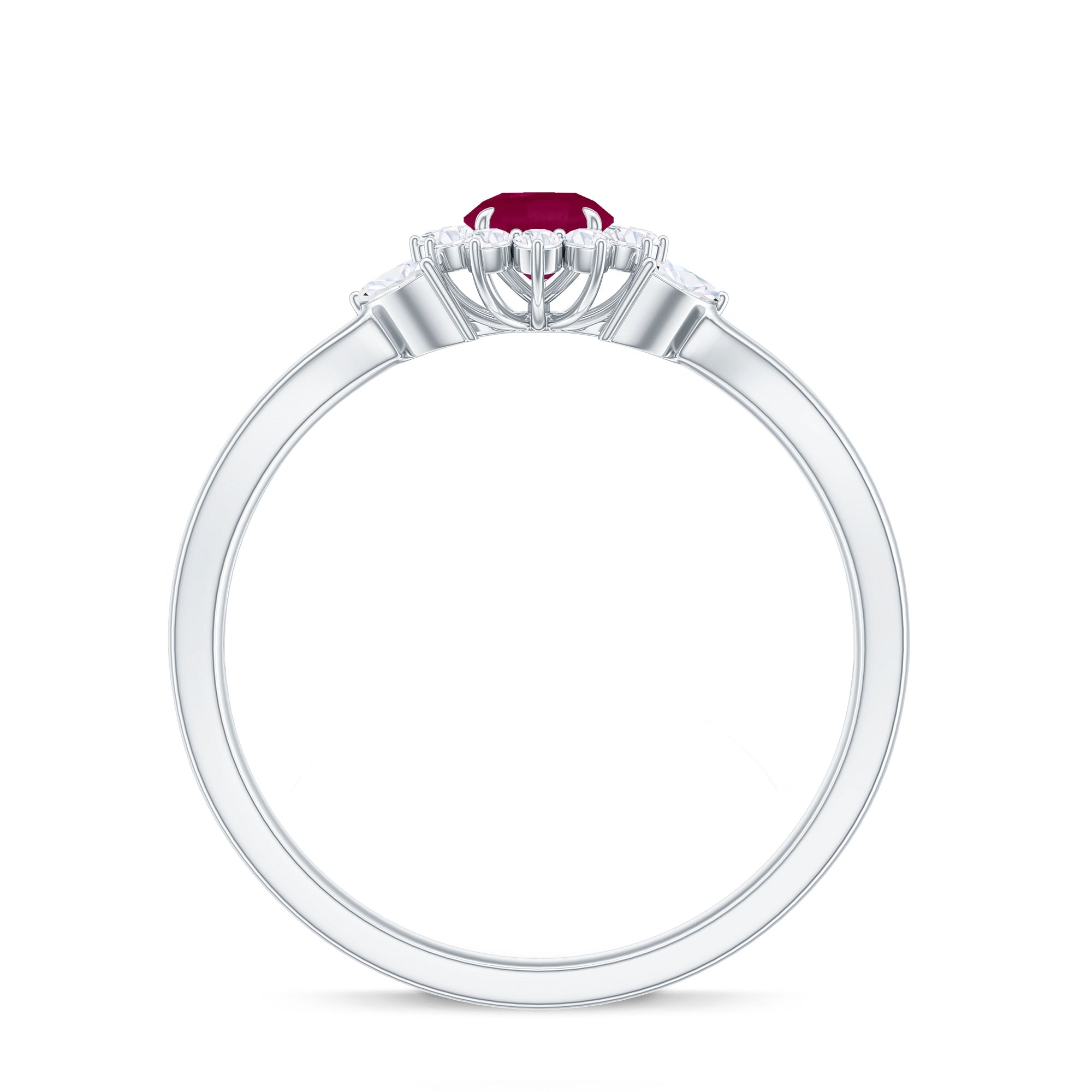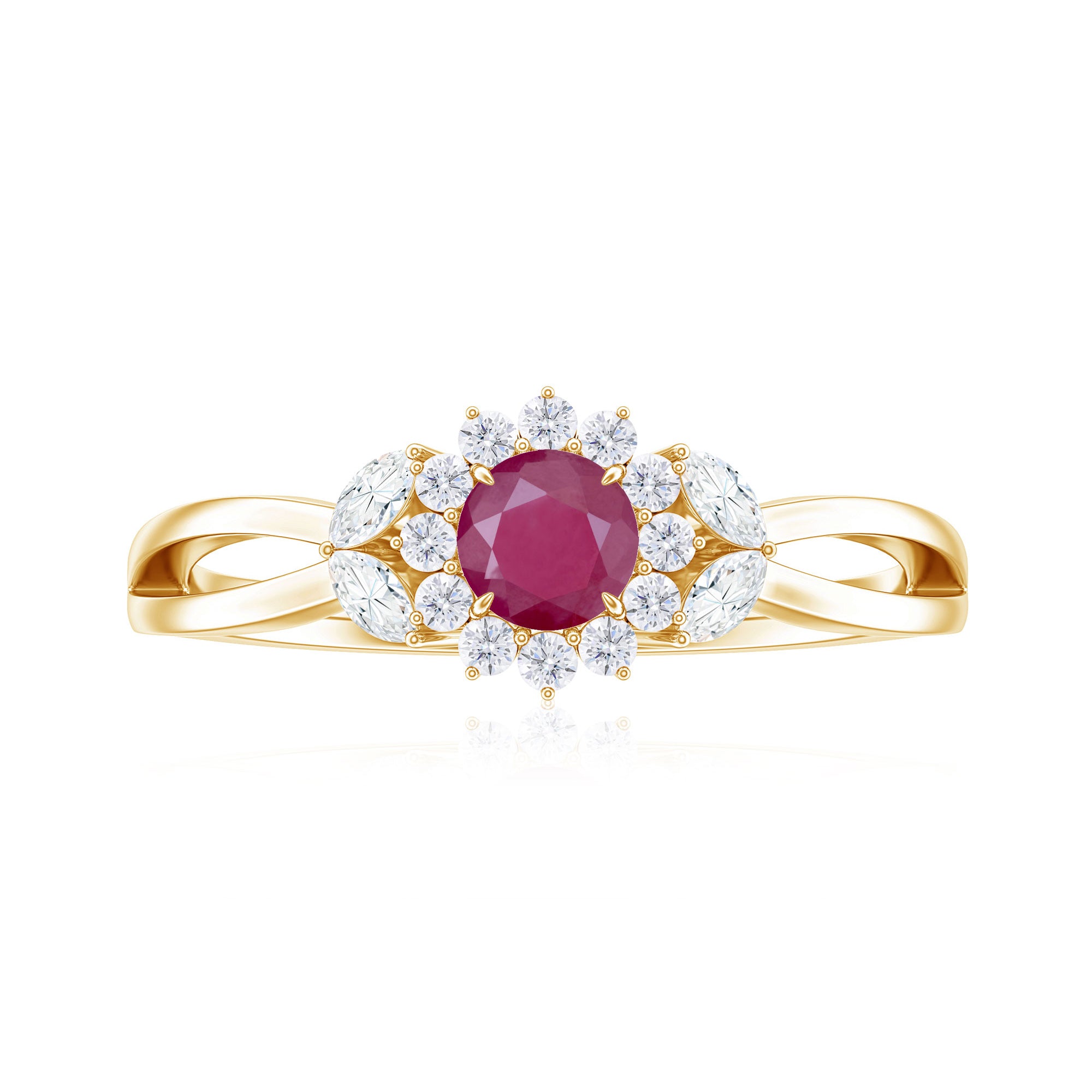 Split Shank Ruby Flower Engagement Ring with Diamond