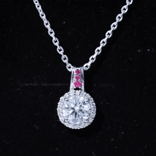 Sterling Silver 2 Carat Moissanite Halo Pendant Necklace with Ruby