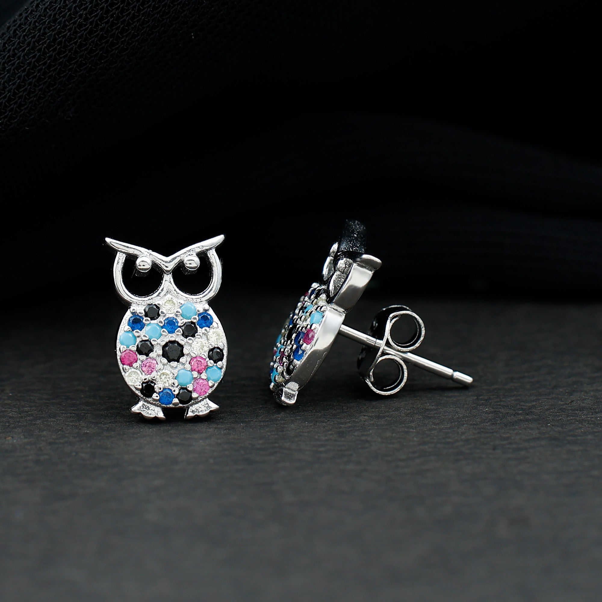 Symbolizing wisdom, charm and a touch of playful elegance, these Owl Earrings bring your style to life with a sparkle that feels both magical and modern. Crafted in 925 Sterling Silver, each tiny owl is brought to brilliance through a vibrant mix of Lab Blue Sapphire, Lab Black Diamond, Lab Ruby, Turquoise and Zircon stones, creating a lively pop of color that catches the eye from every angle. The secure Screw Back Closure ensures all-day comfort and confidence, making them perfect for daily wear or special evenings out. Whether you are pairing them with casual outfits or bold statement pieces, these Multi Gemstone Earrings add a unique personality that gently elevates any look. Beautifully presented in a signature jewelry box, these thoughtful treasures are ready to surprise someone you love. A delightful gift for birthdays, holidays or simply to show appreciation, these Multicolor Stone Earrings are charming keepsakes that shine with creativity and meaning.