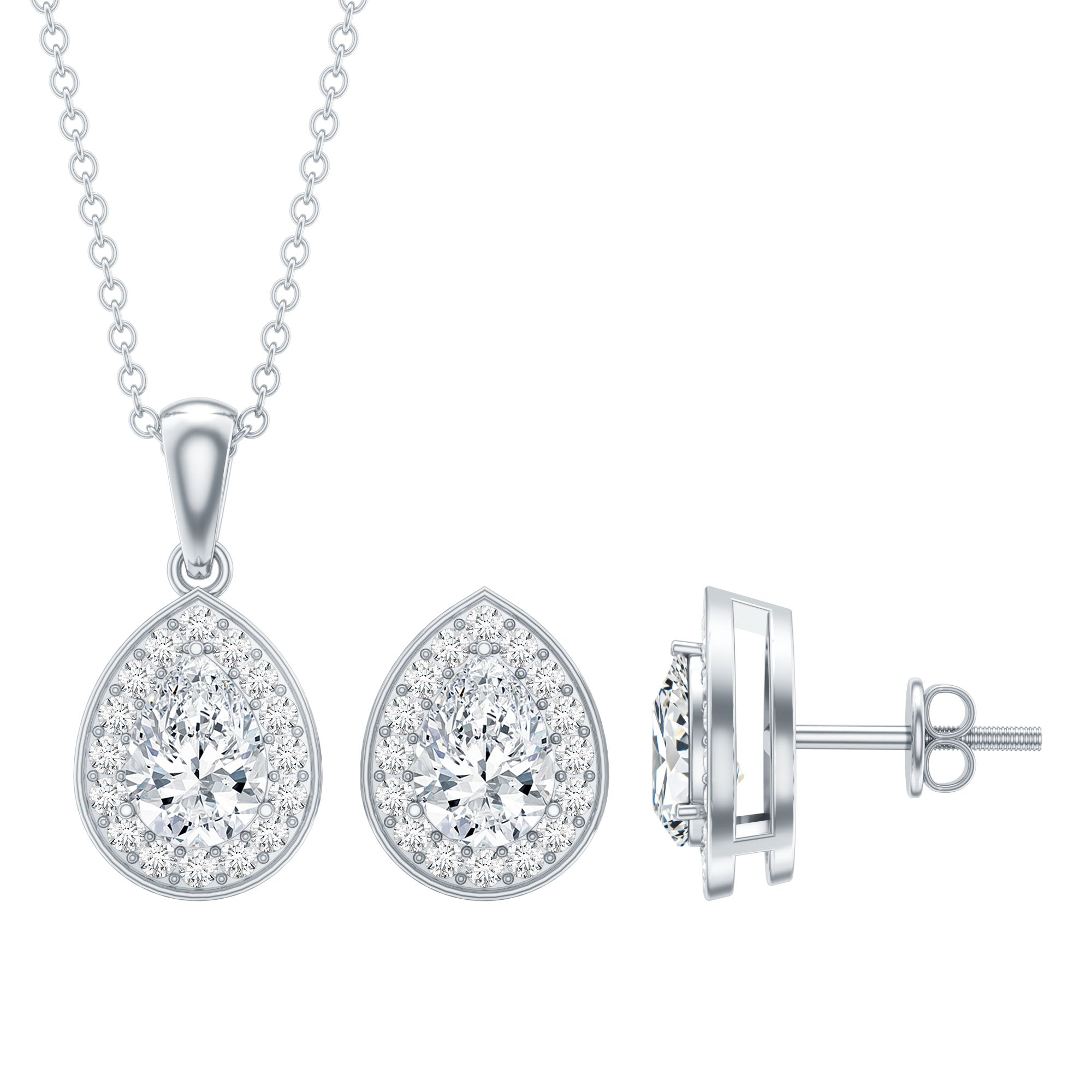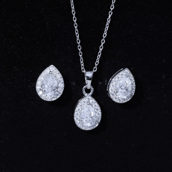 Sterling Silver Moissanite Teardrop Necklace and Earrings Set