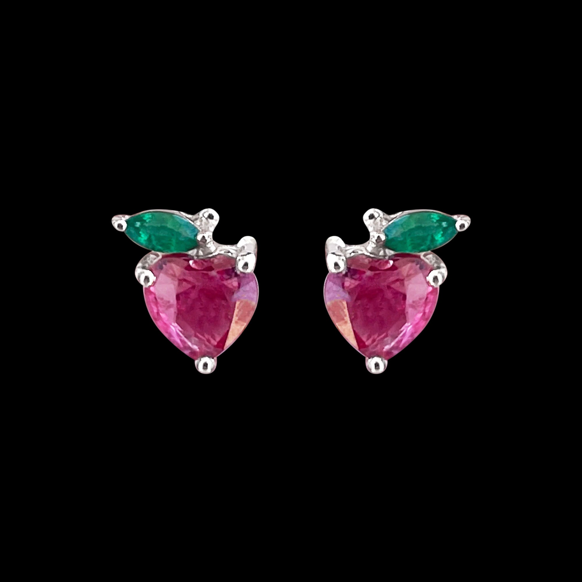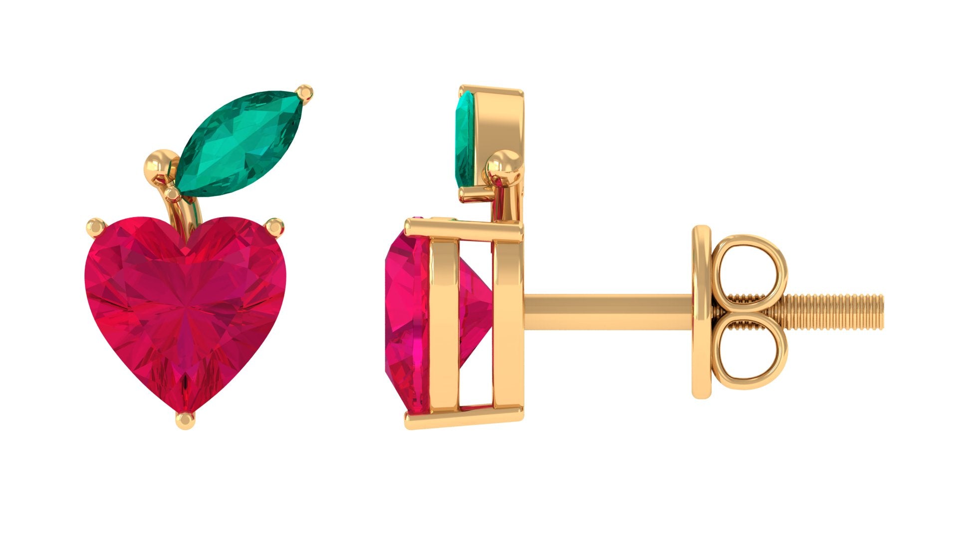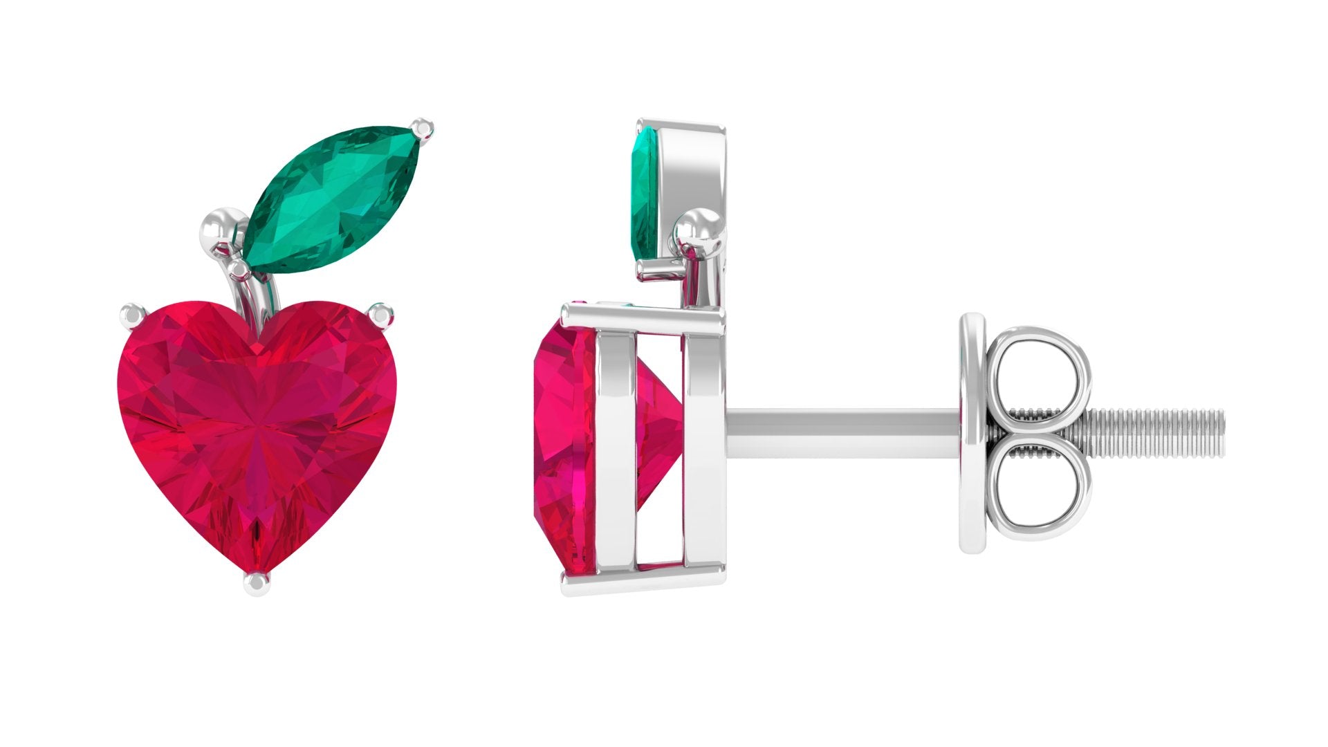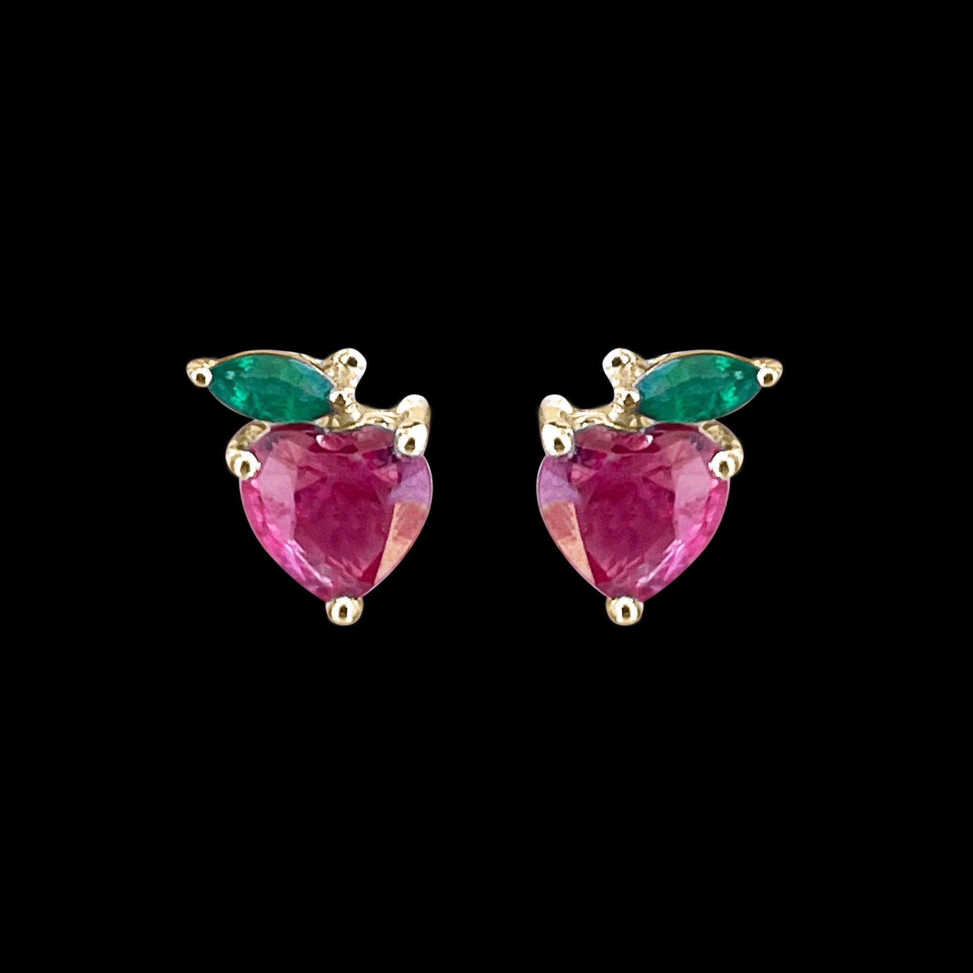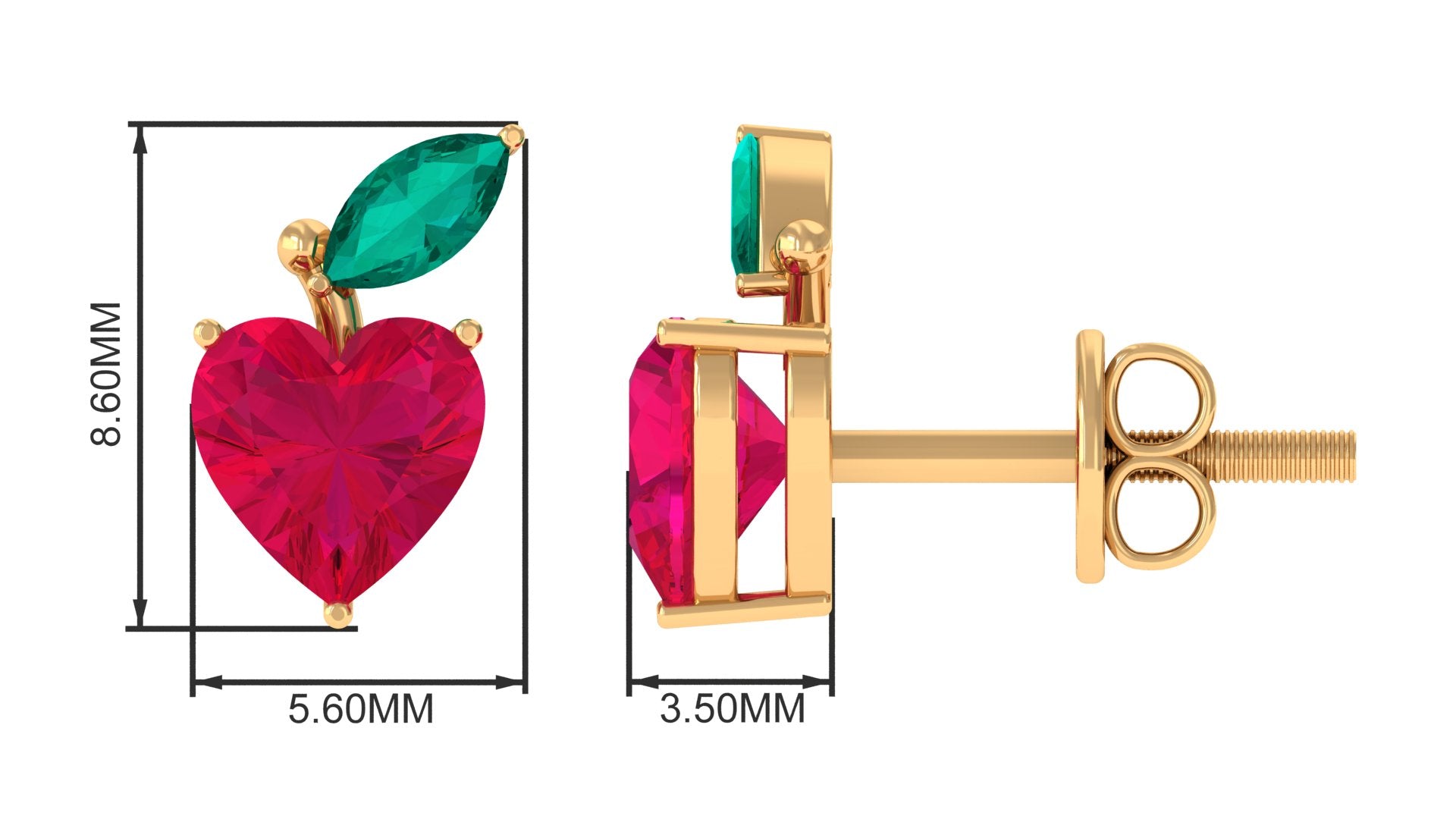 Heart Shaped Ruby Minimal Stud Earrings with Emerald