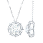 Grab this Moissanite Pendant to make your look complete for the special day. This pendant is crafted with 14K White Gold Plated Silver and features an 8 MM Round Shape Moissanite securely placed in Prong Setting. The Flower Pendant is accentuated with a hidden bail and dangles with a classic cable chain, which makes it beautifully sit on the neckline. This Floral Pendant Necklace is a thoughtful gift for your beloved and will be delivered to you in a signature velvet pouch with a certificate of authenticity.