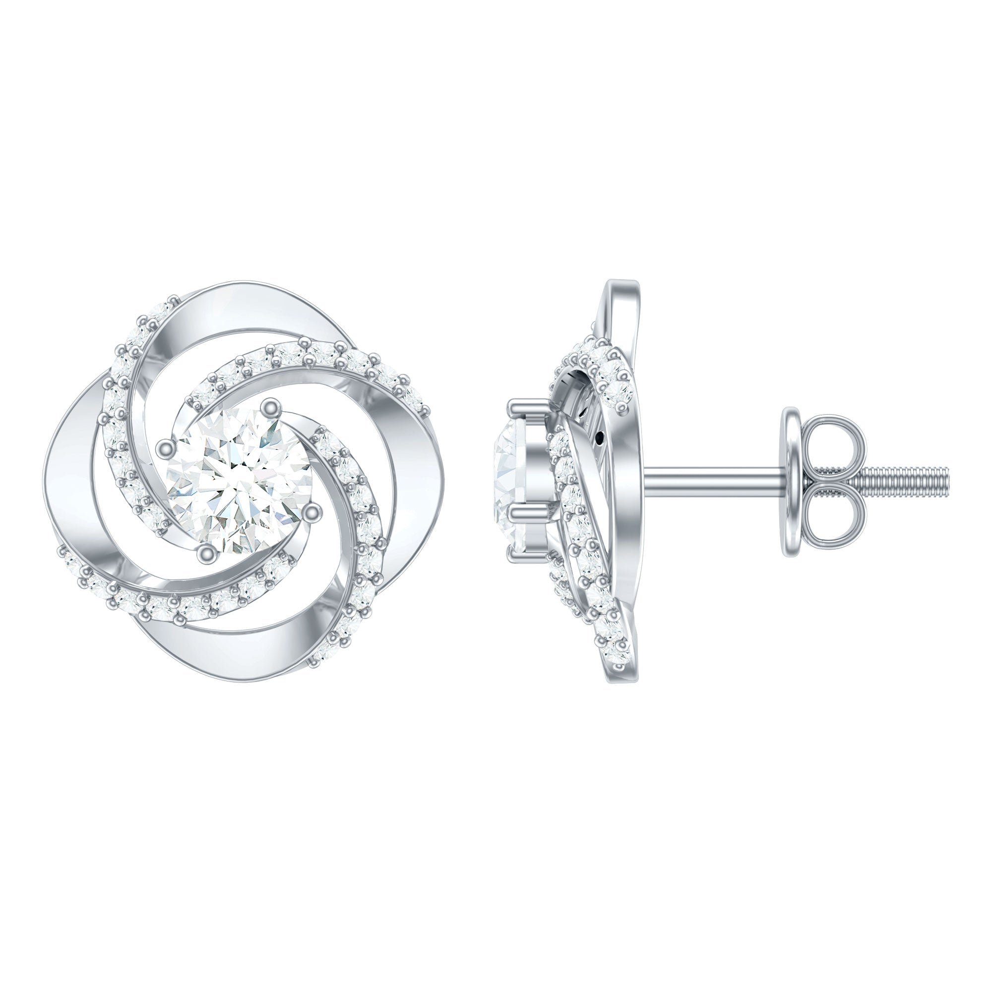 Swirl Stud Earrings Round Shape Moissanite in Prong Setting