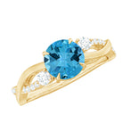 Swiss Blue Topaz and Diamond Engagement Ring with Crossover Shank