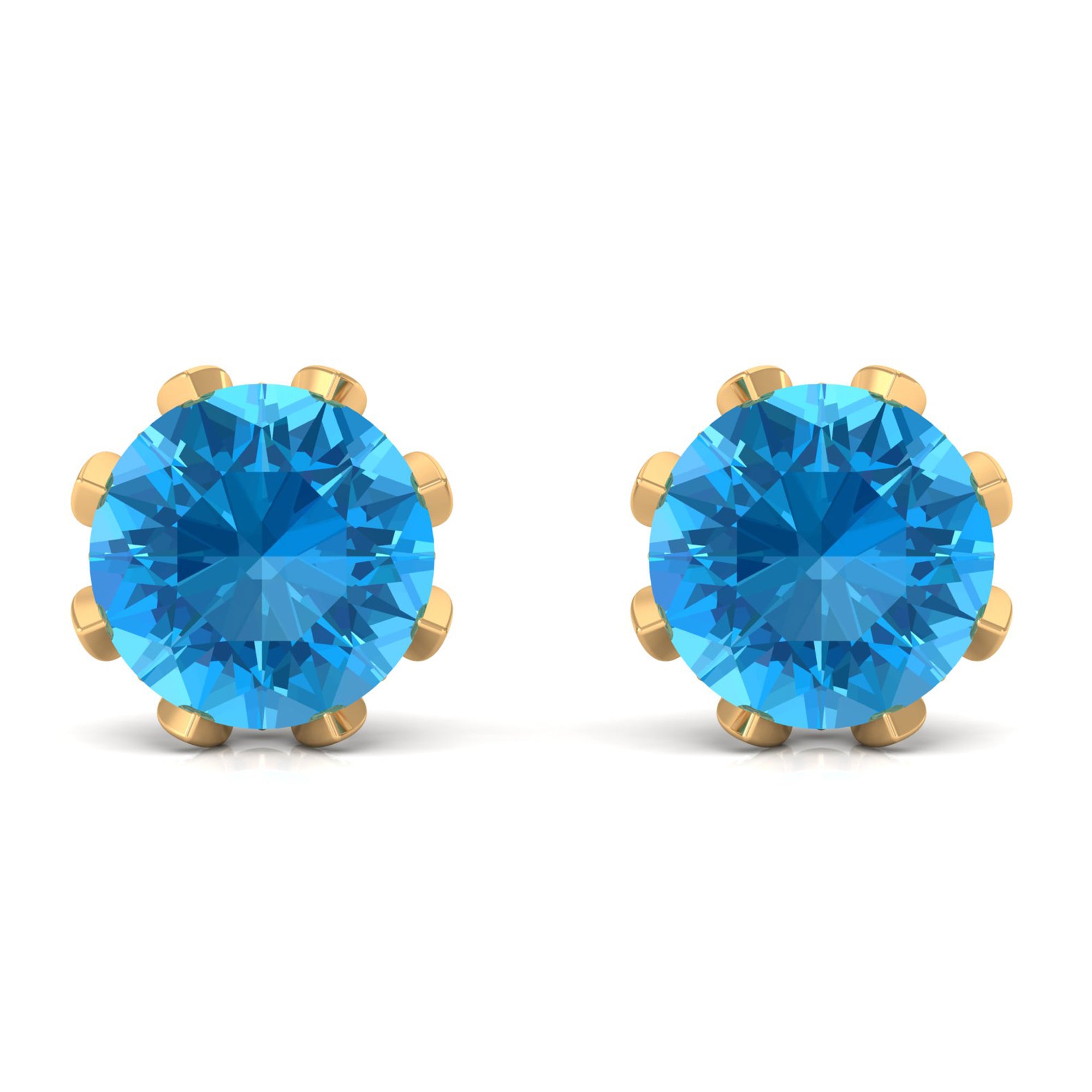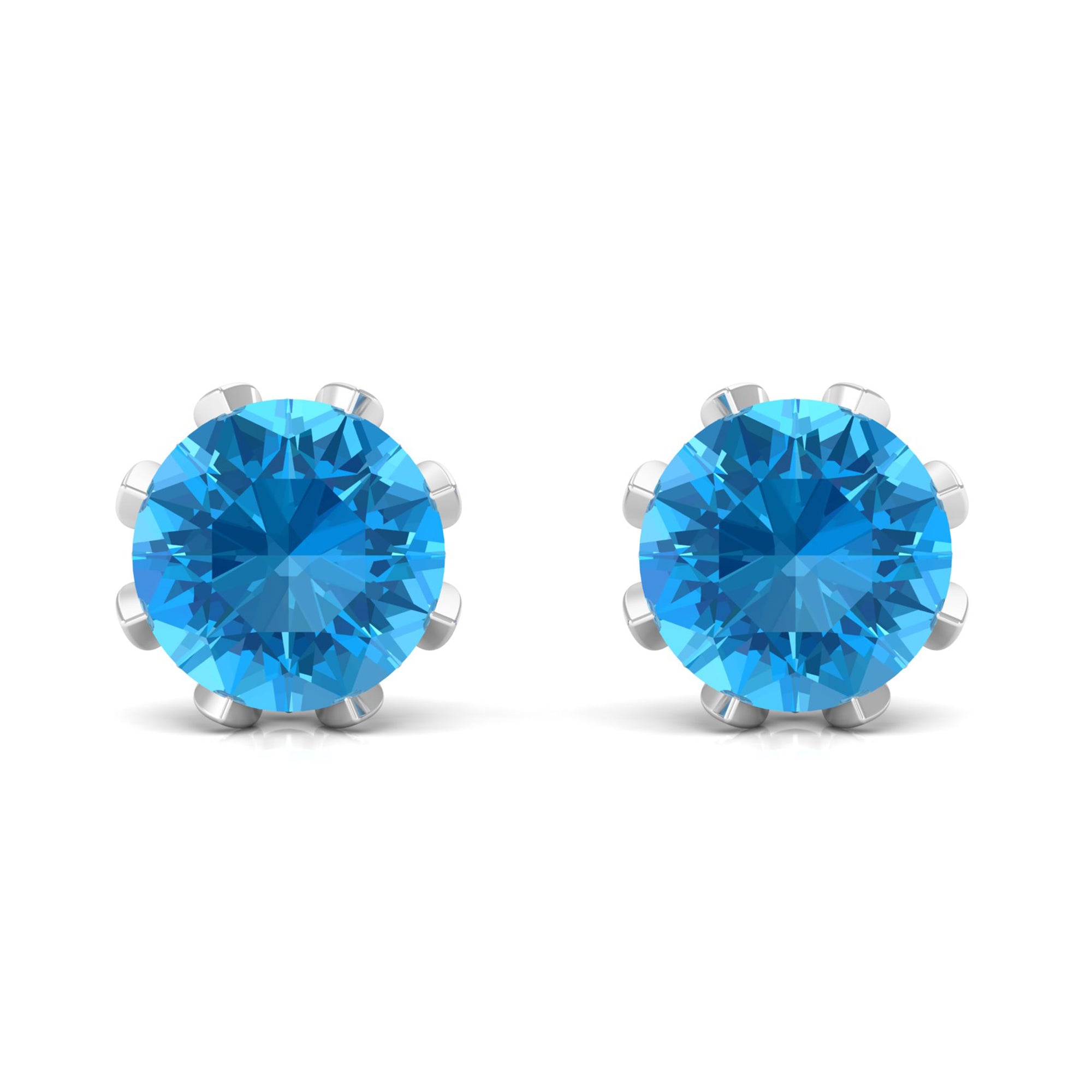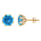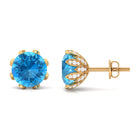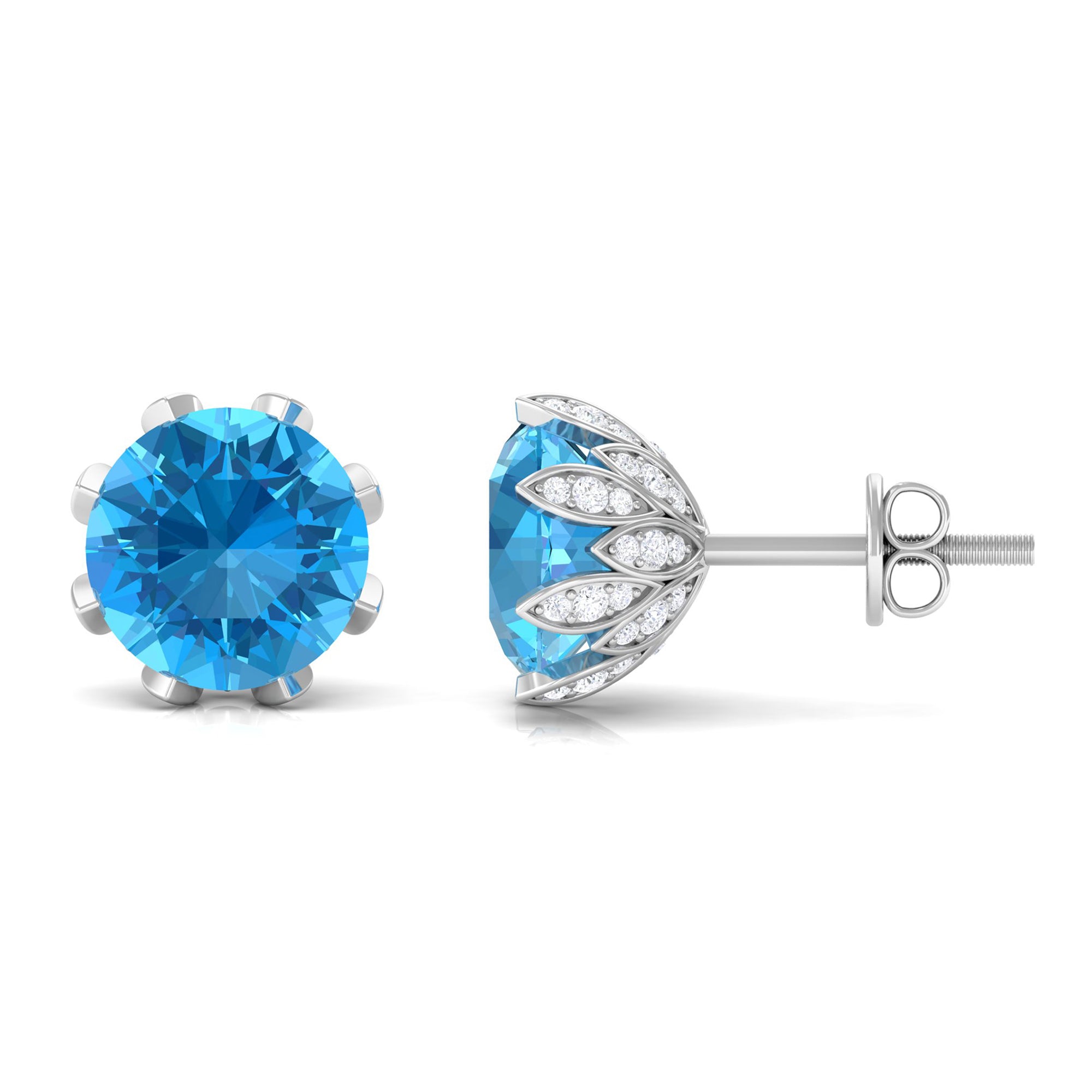 Jewelry has the power to be the one little thing that makes you feel unique. These Solitaire Earrings are embellished with Round Shape Swiss Blue Topaz and Diamond in Flower Setting. These Swiss Blue Topaz Earrings are highly customizable and allow you to choose your preferred metal color from the available options. Tell your story by wearing these Designer Bridal Earrings.
