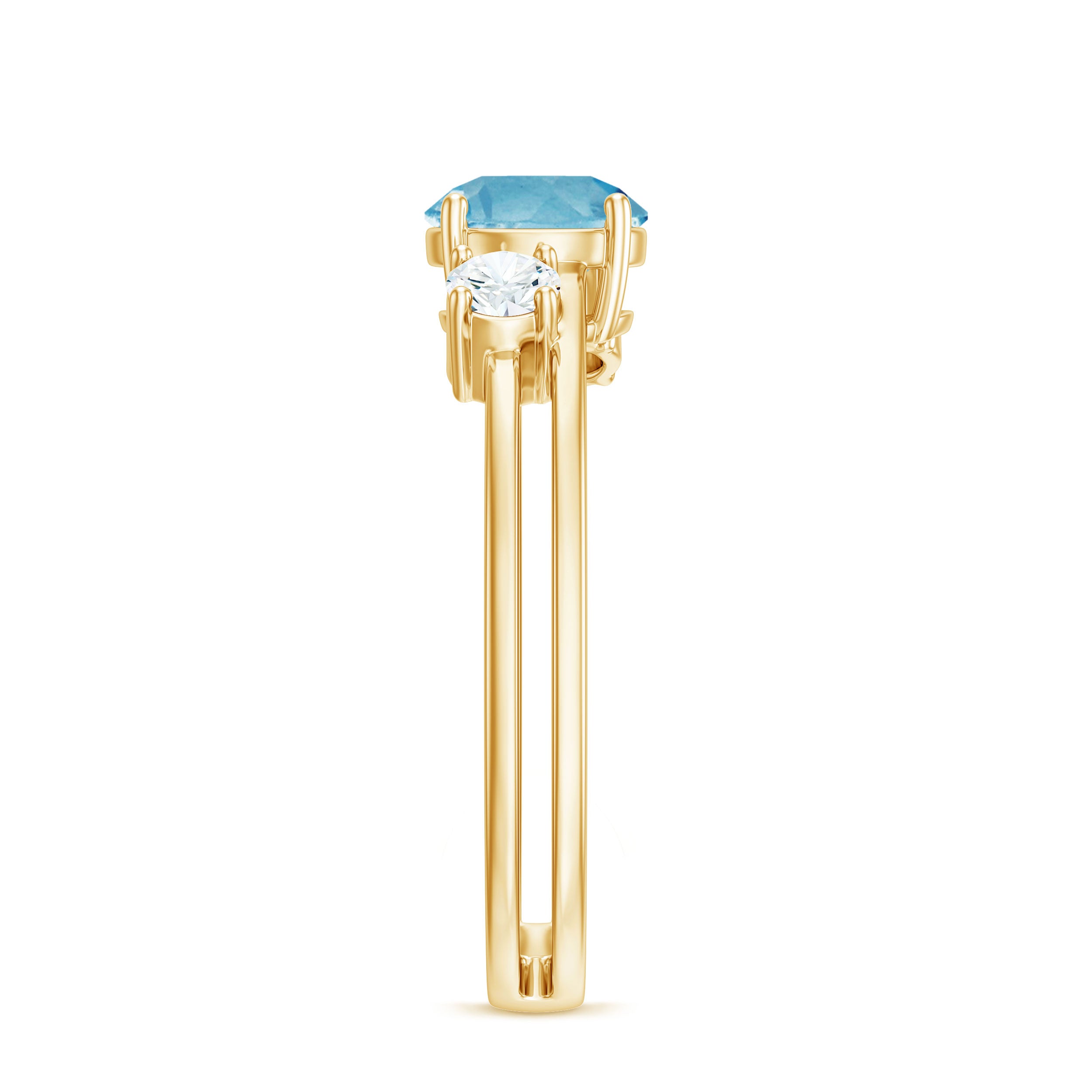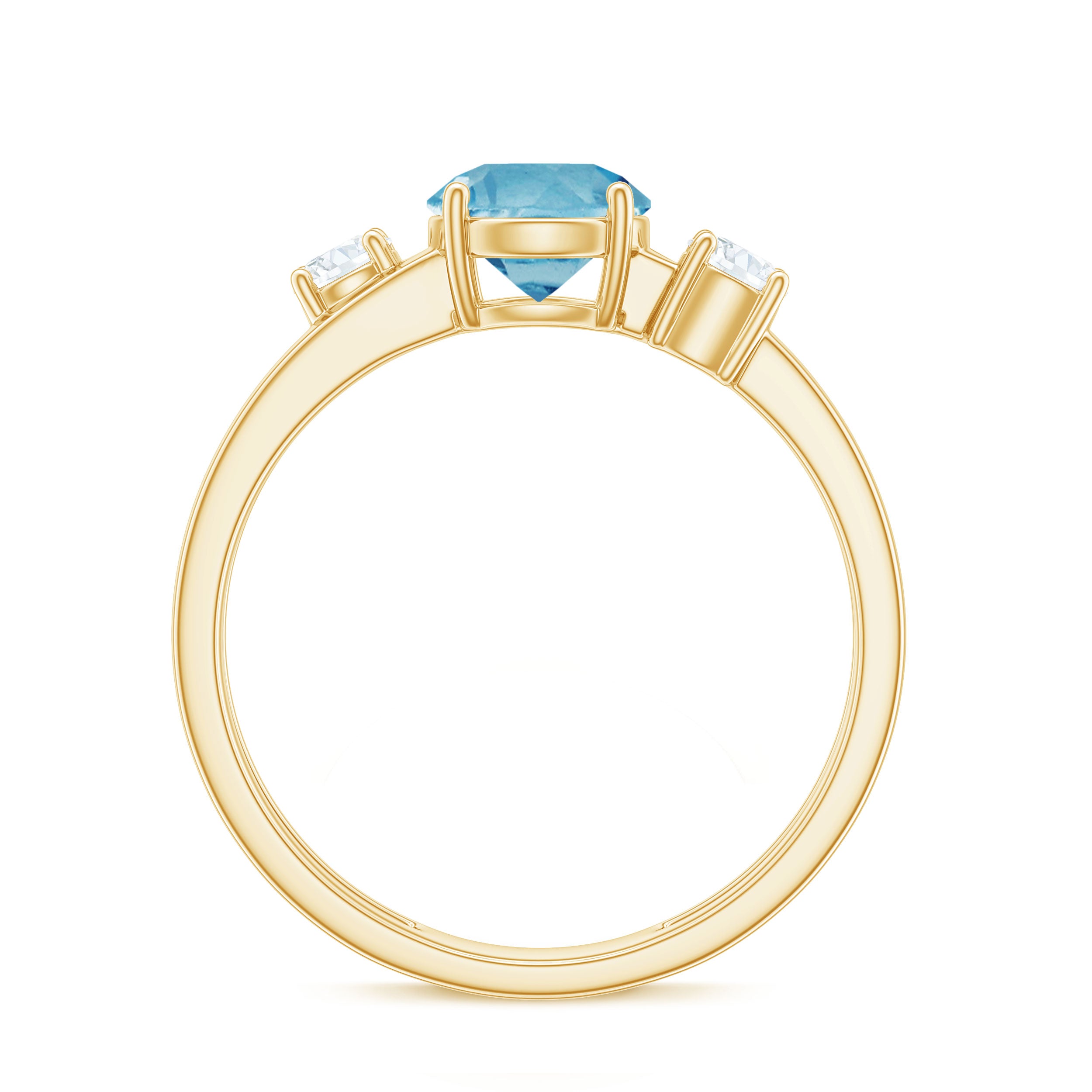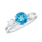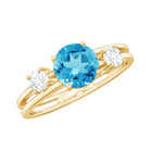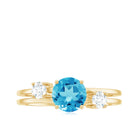 Swiss Blue Topaz Solitaire Double Band Ring with Diamond
