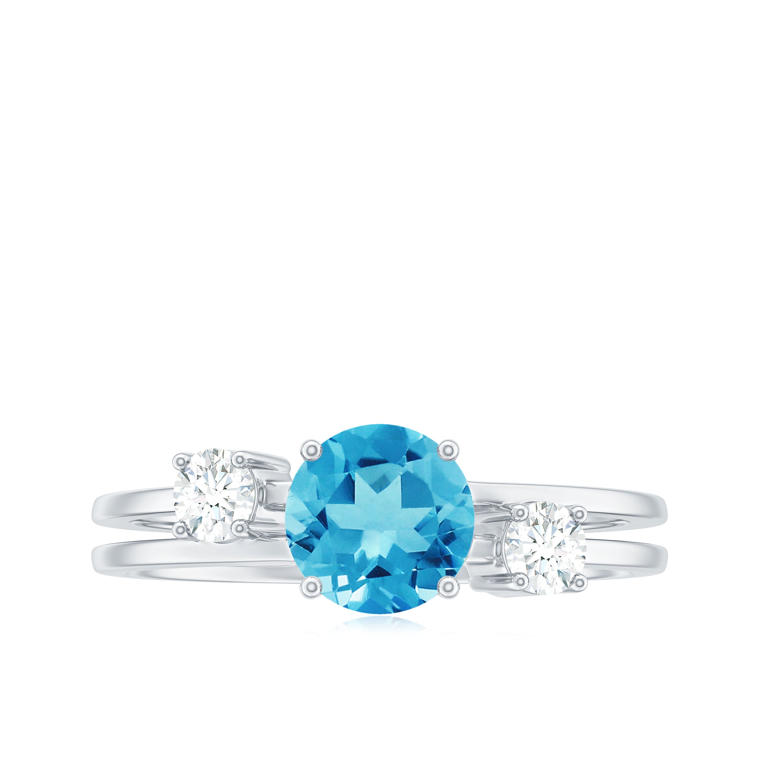 Add a trendy accessory to your everyday outfit with this Solitaire Double Band Ring that features Round Shape Swiss Blue Topaz and Diamond Stones.