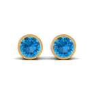 Swiss Blue Topaz Solitaire Stud Earrings in Bezel Setting