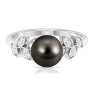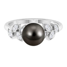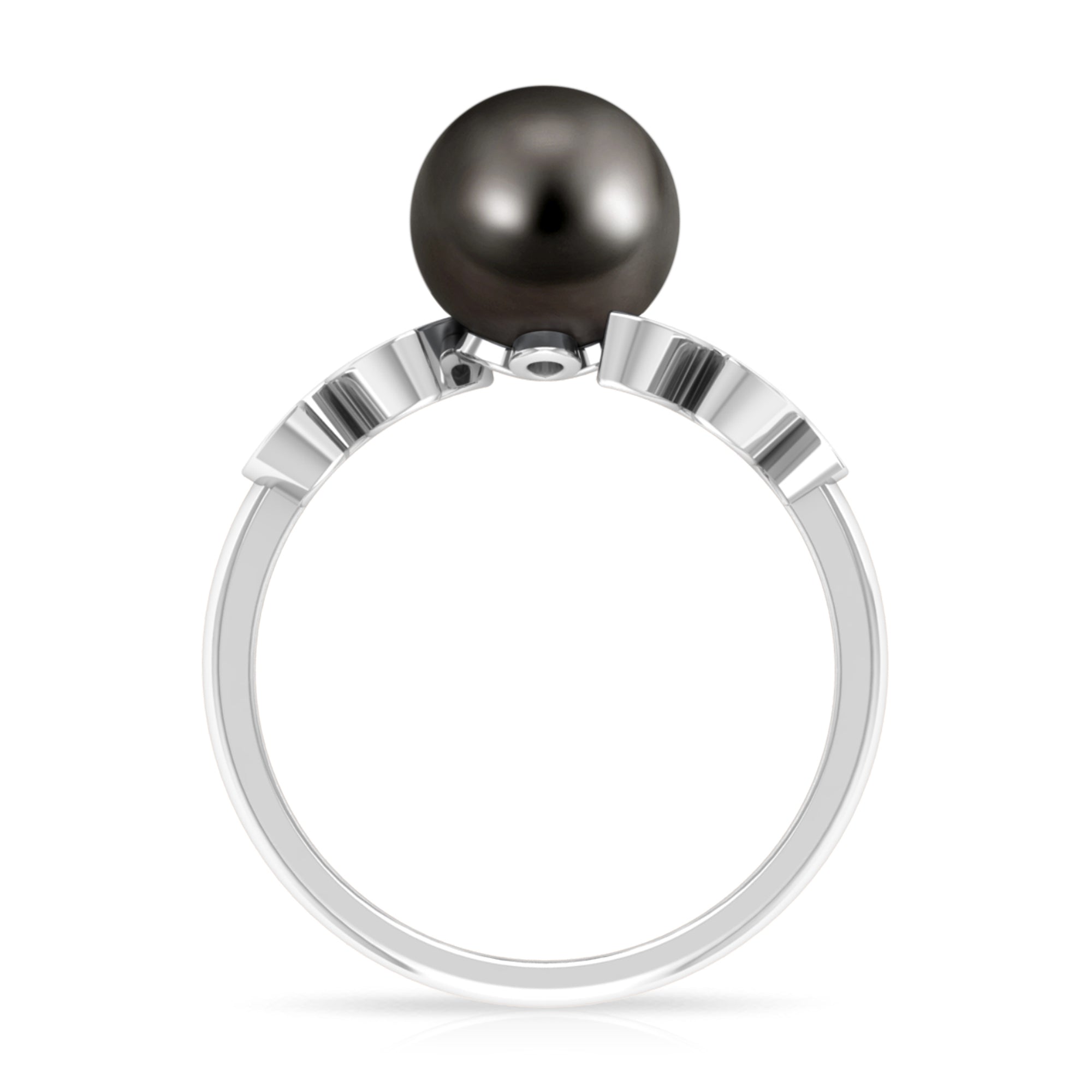 Tahitian Black Pearl and Diamond Leaf Minimal Engagement Ring