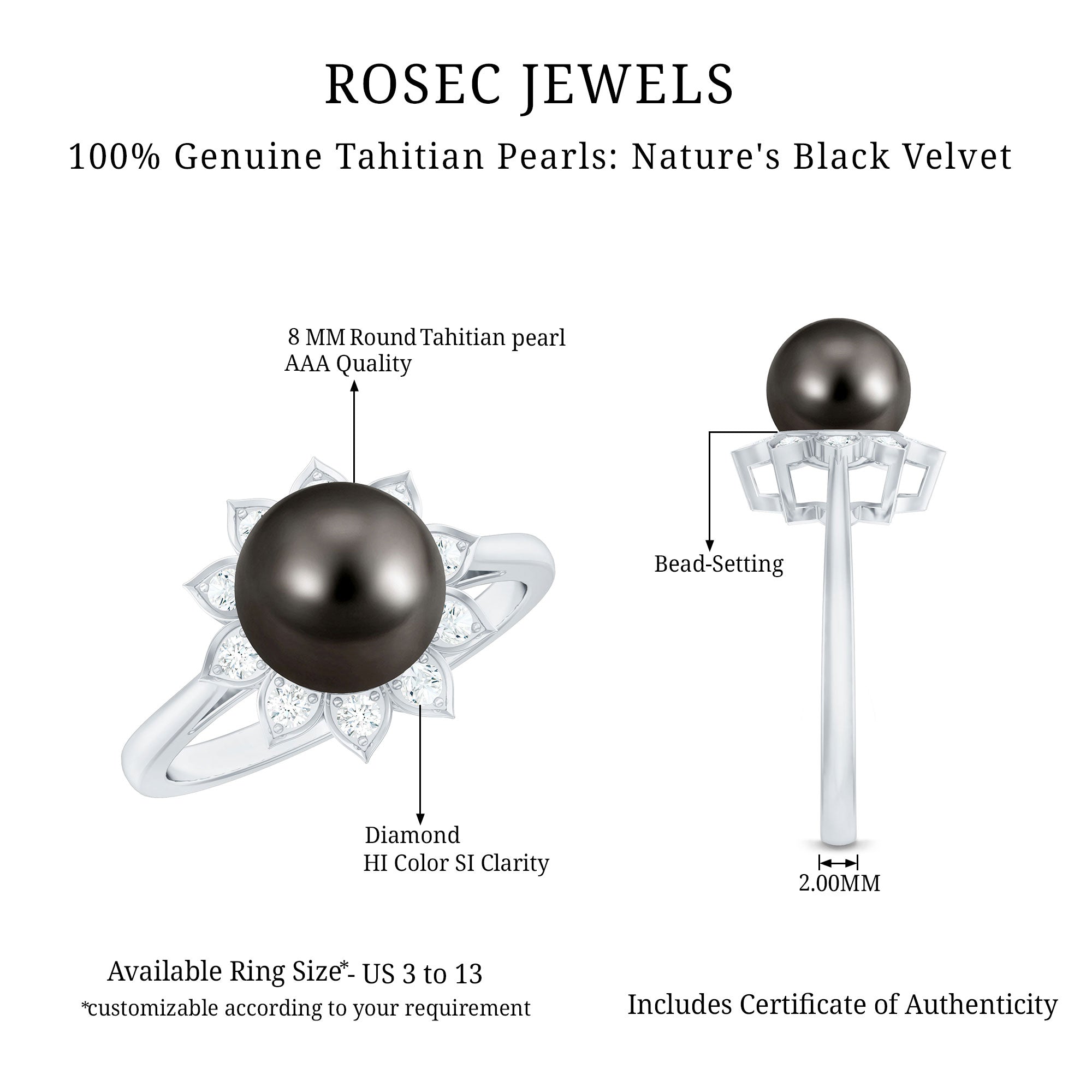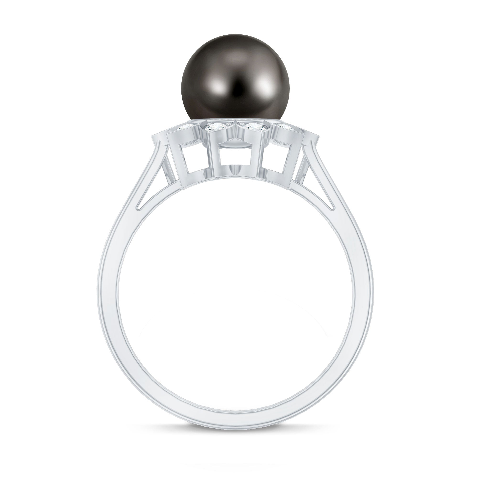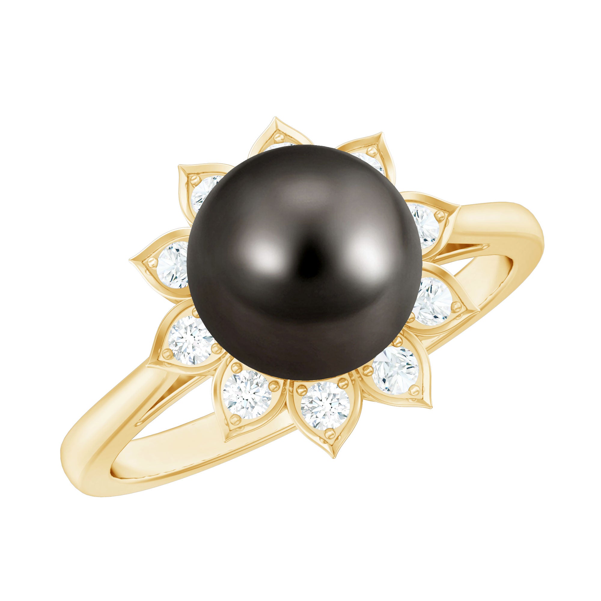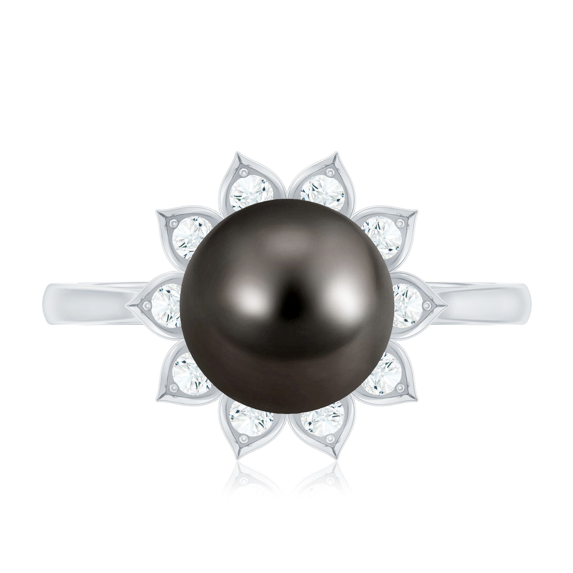 Tahitian Black Pearl Engagement Ring with Diamond Floral Halo