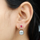 Tahitian Pearl and Created Ruby Drop Earrings with Moissanite