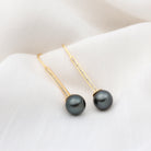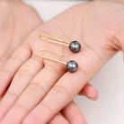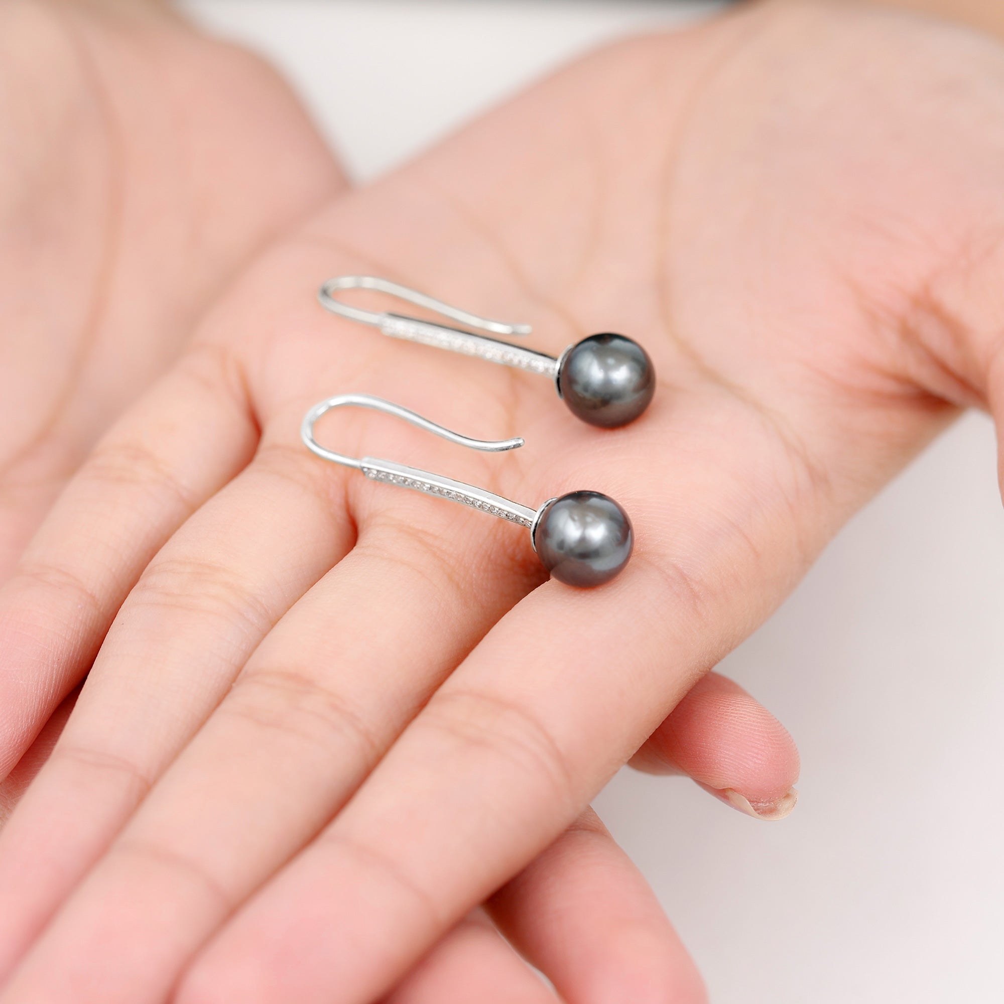 Tahitian Pearl and Diamond Accent Bar Drop Earrings with Fish Hook Backing