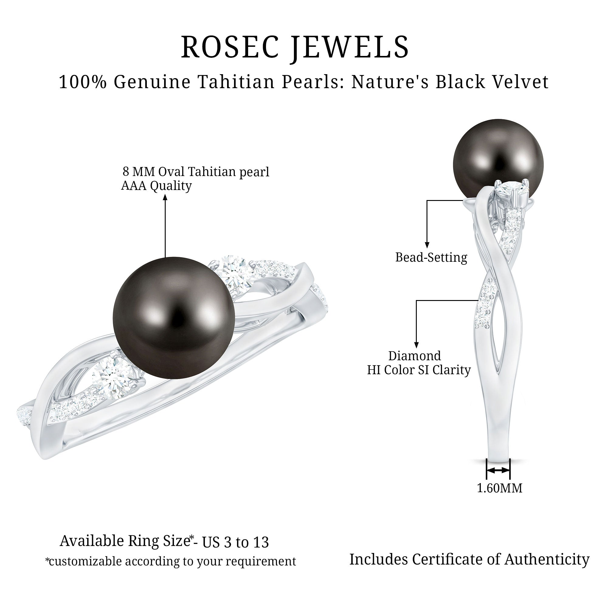 Tahitian Pearl and Diamond Crossover Engagement Ring
