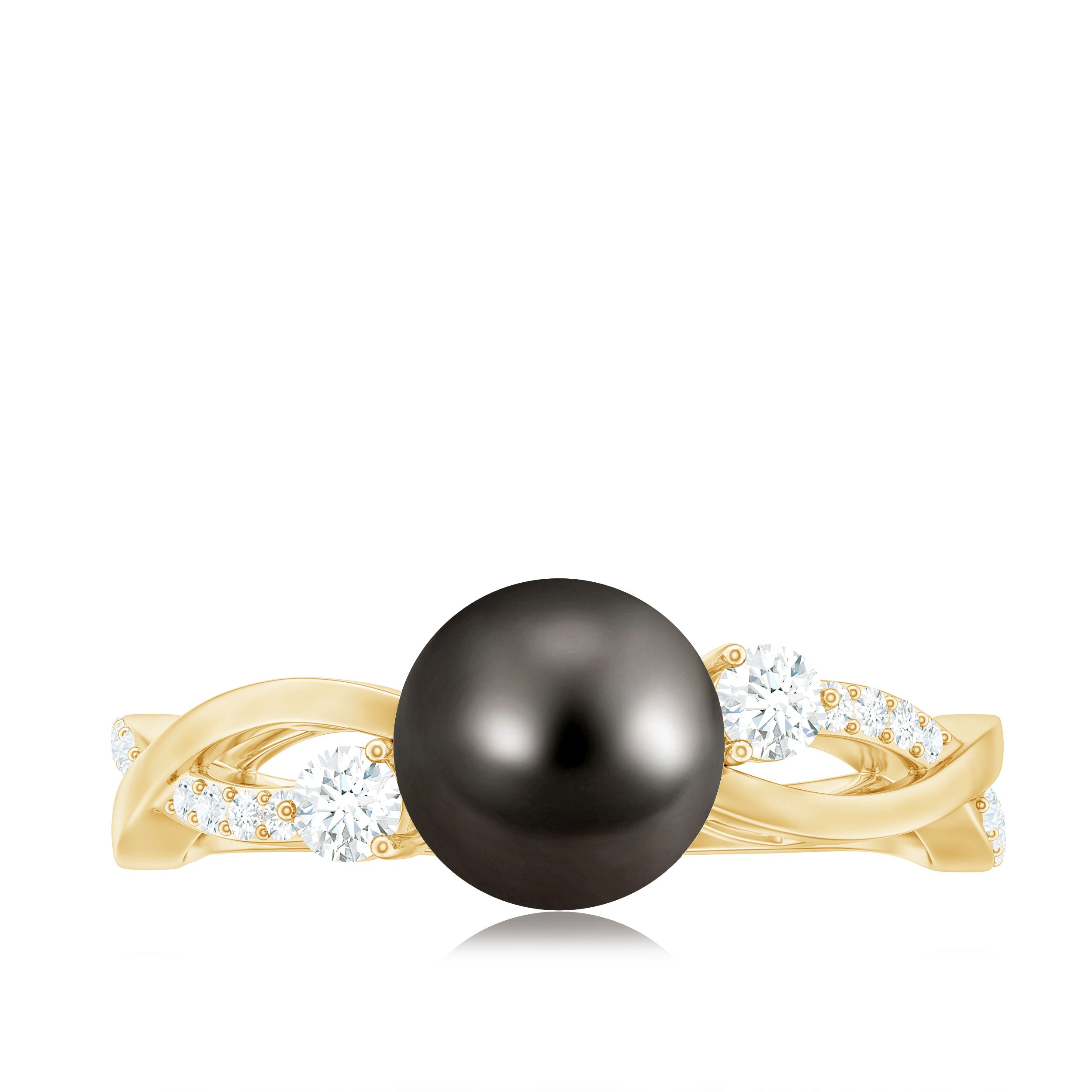 Sparkle up your look with this Tahitian Pearl Engagement Ring, it has crossover shank on which Round Diamond is held in Prong Setting to accentuate the look of this engagement ring. This Tahitian Black Pearl Crossover Engagement Ring is an appropriate present for june born ladies.