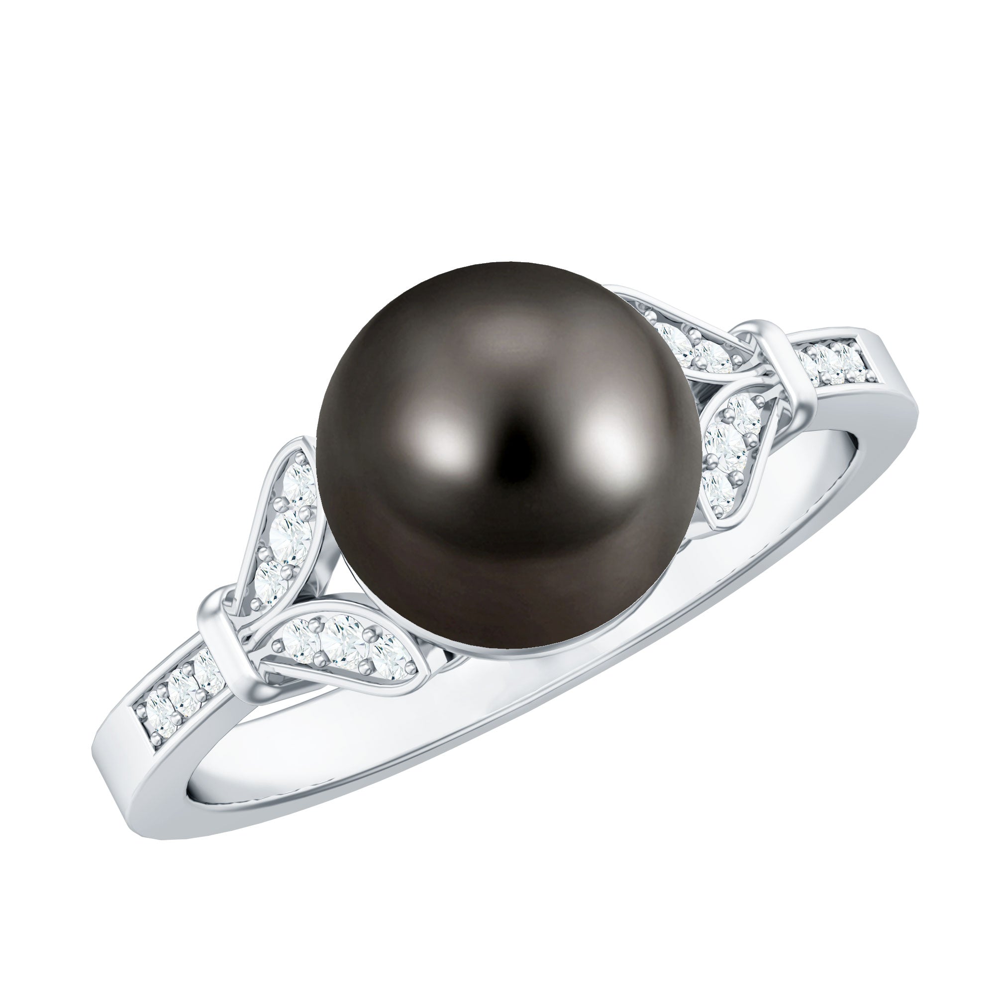 Unique Engagement Ring is embellished with 8 MM Round Shape Tahitian Pearl as Solitaire and Diamond are set in Side Stones gives a gorgeous touch to this Ring. This beautiful Split Shank Engagement Ring is crafted in Gold. A perfect present for your Lady Love to gift on her special or big day.