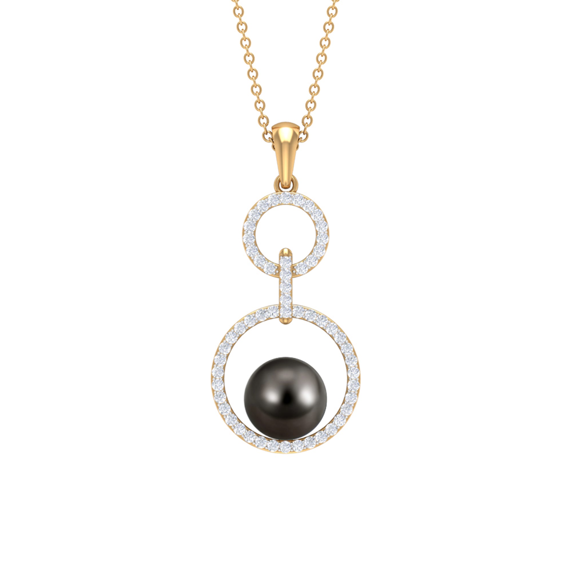 Elevate your style with the refined elegance of this exquisite Tahitian Pearl Pendant. The focal point of this pendant is a Brilliant Round Black Tahitian Pearl, delicately set in a secure Bead Setting, enhanced by a sparkling Diamond Halo and an intricate Eternity design. This dangle pendant is a remarkable addition to your jewelry collection, radiating timeless beauty and sophistication. Whether as a thoughtful gift for a loved one or a well-deserved treat for yourself, this pendant necklace is sure to captivate with its exquisite craftsmanship and enduring charm.
