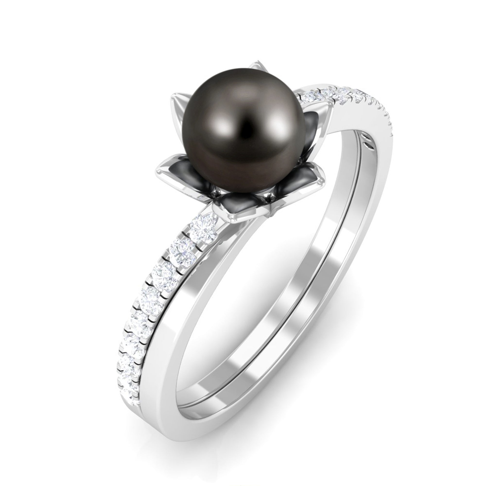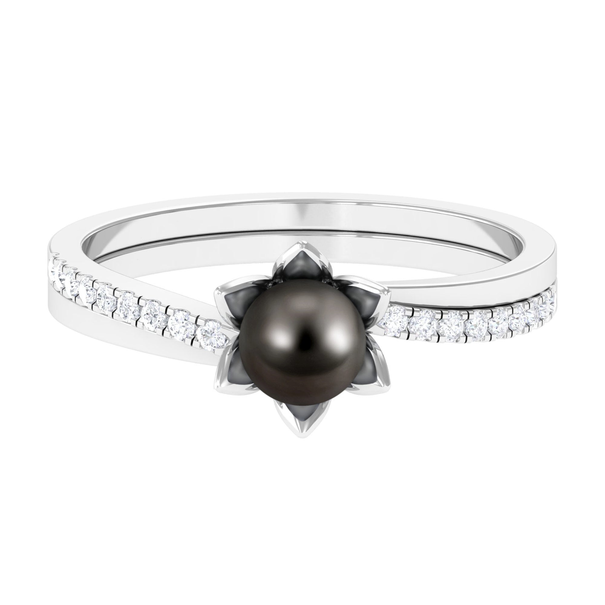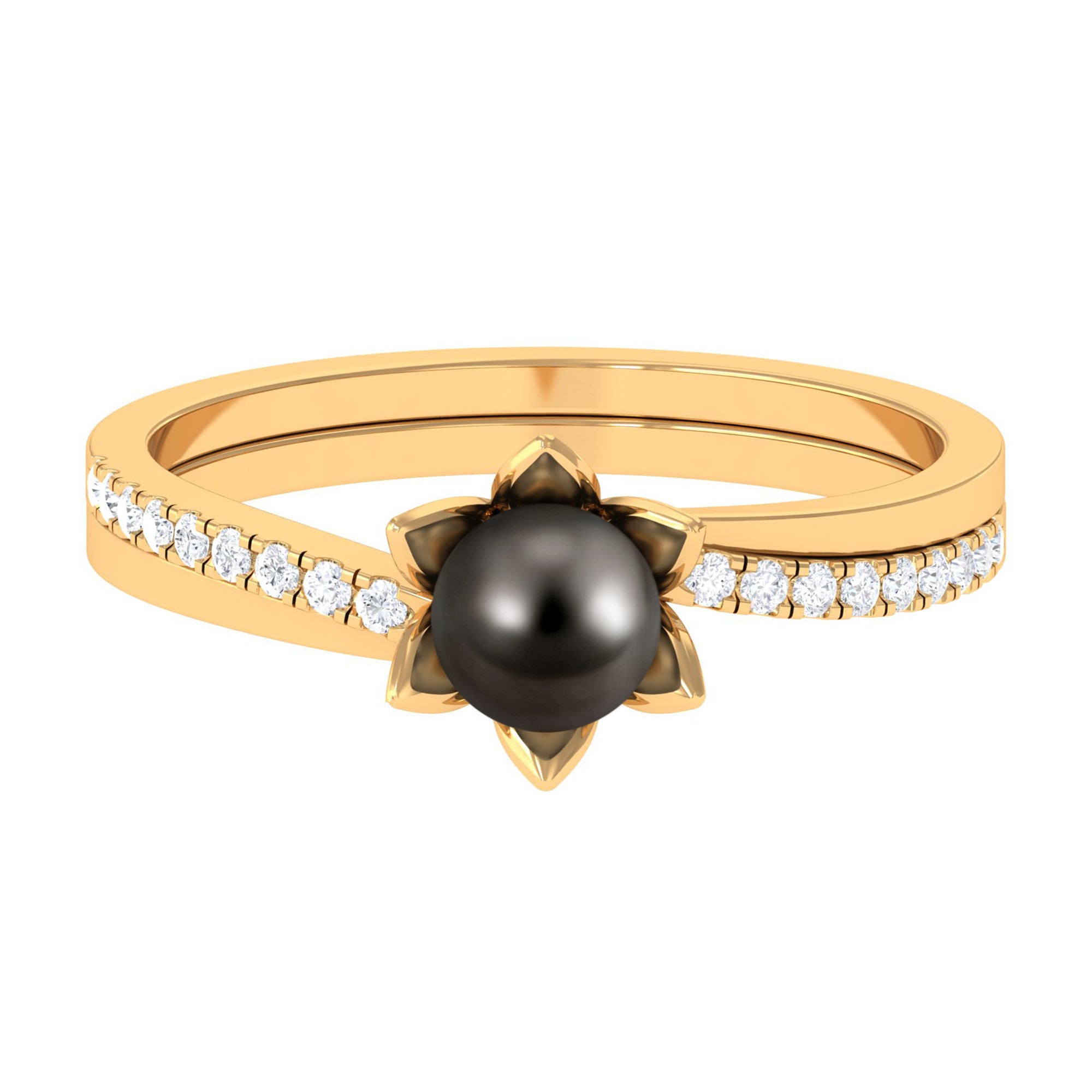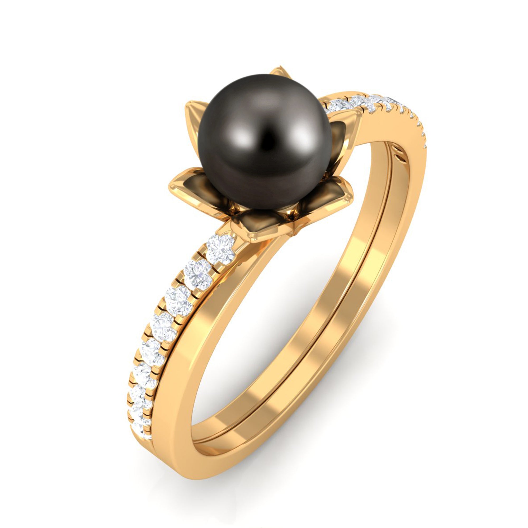 The glistening bypass shank holds an eye-pleasing round Tahitian Pearl, that is surrounded by a floriated metal motif. Perfectly cut and polished round Diamond adorn the shank band and complete this finely crafted solitaire ring. If you are an admirer of rare beauties, then get this minimalist ring for yourself as a token of self-love or present it to someone who lights up your life.