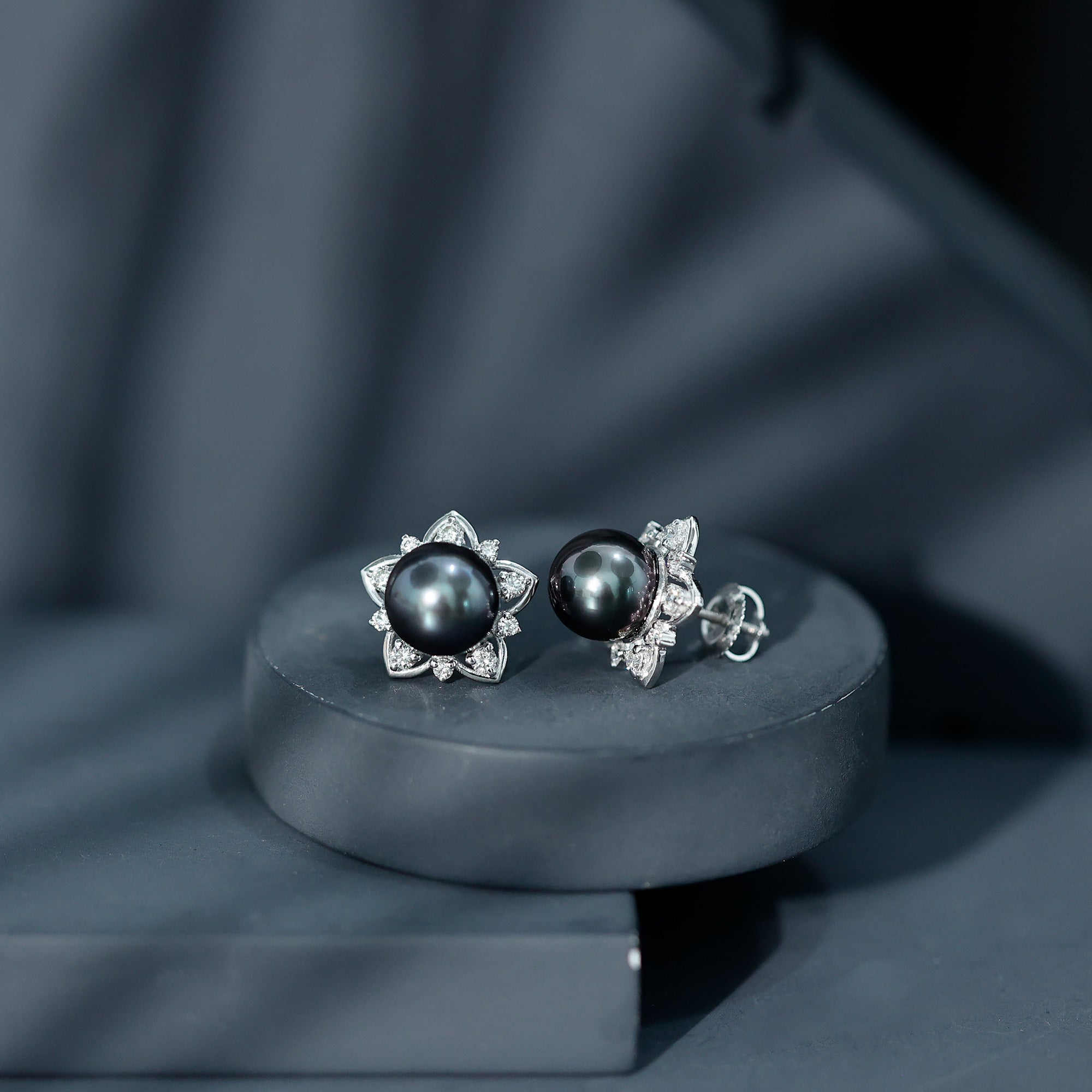 Tahitian Pearl and Diamond Flower Stud Earrings