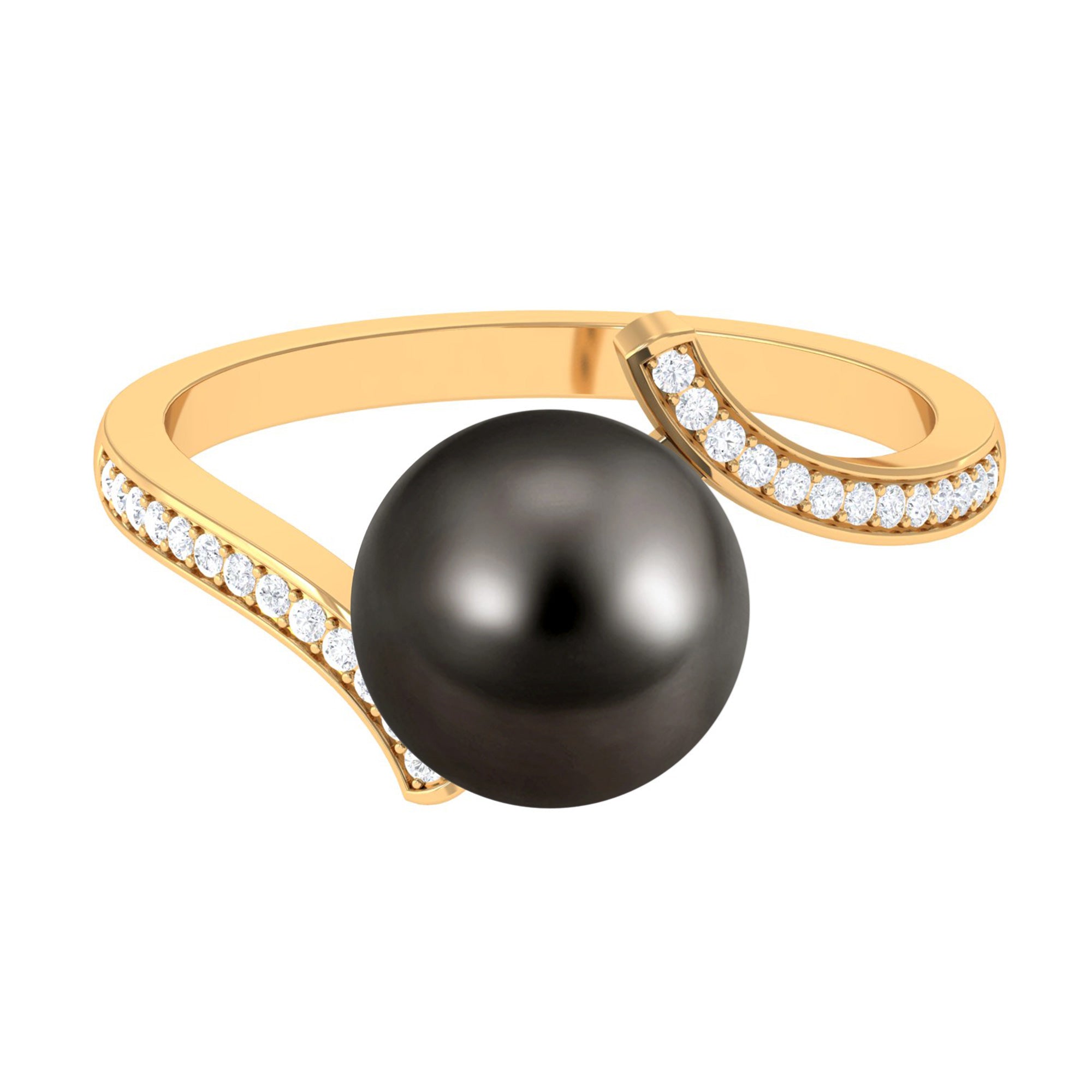 With a contemporary bypass shank design this ring has a unique solitaire Black Pearl with shining metal and a sculptural look. Amazingly crafted in Gold with a round shape Tahitian Pearl having Diamond on the bypass shank. Stunningly adorn yourself with this timeless Tahitian Pearl jewelry.