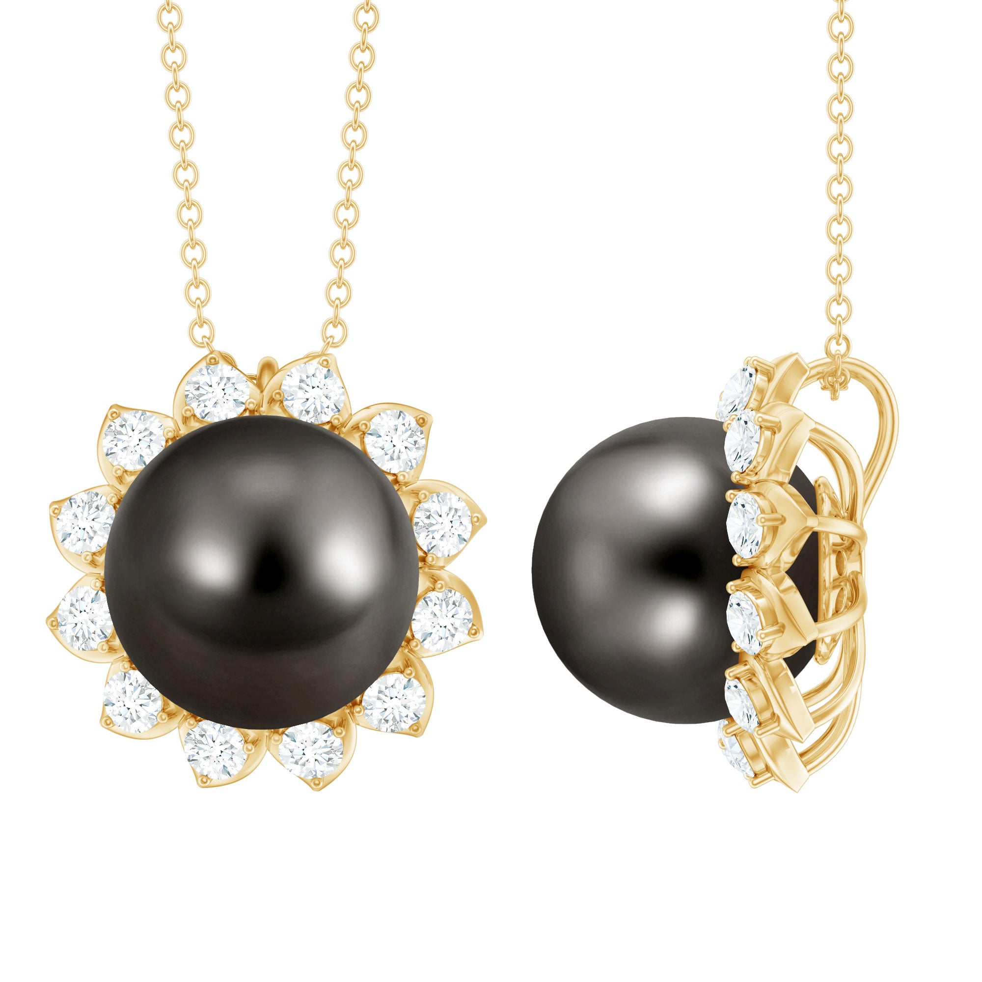 Get this Flower Pendant Necklace for your loved ones as it is embellished with Round Shape Tahitian Pearl and Round Shape Diamond assembled in a Floral Design. Flaunt this Black Pearl Pendant Necklace with your casual or dressy attire for an enchanting look. This Floral Pendant Necklace makes a wonderful present for her.