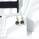 Tahitian Pearl Drop and Diamond Art Deco Earrings