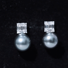 Tahitian Pearl Simple Stud Earrings with Baguette Diamond